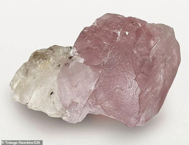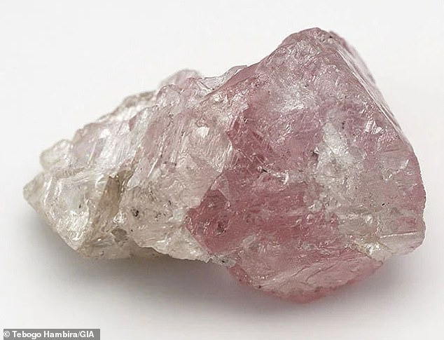 "Phần màu hồng có thể ban đầu không màu, sau đó biến dạng do một sự kiện tạo núi cách đây hàng triệu năm, dẫn đến hình thành màu hồng ở một nửa trước và nửa còn lại không màu hình thành sau", quản lý Sally chia sẻ. Ảnh: Tebogo Hambira/GIA.