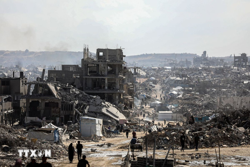 Cảnh đổ nát do xung đột tại Dải Gaza ngày 24/10/2025. (Ảnh: THX/TTXVN)