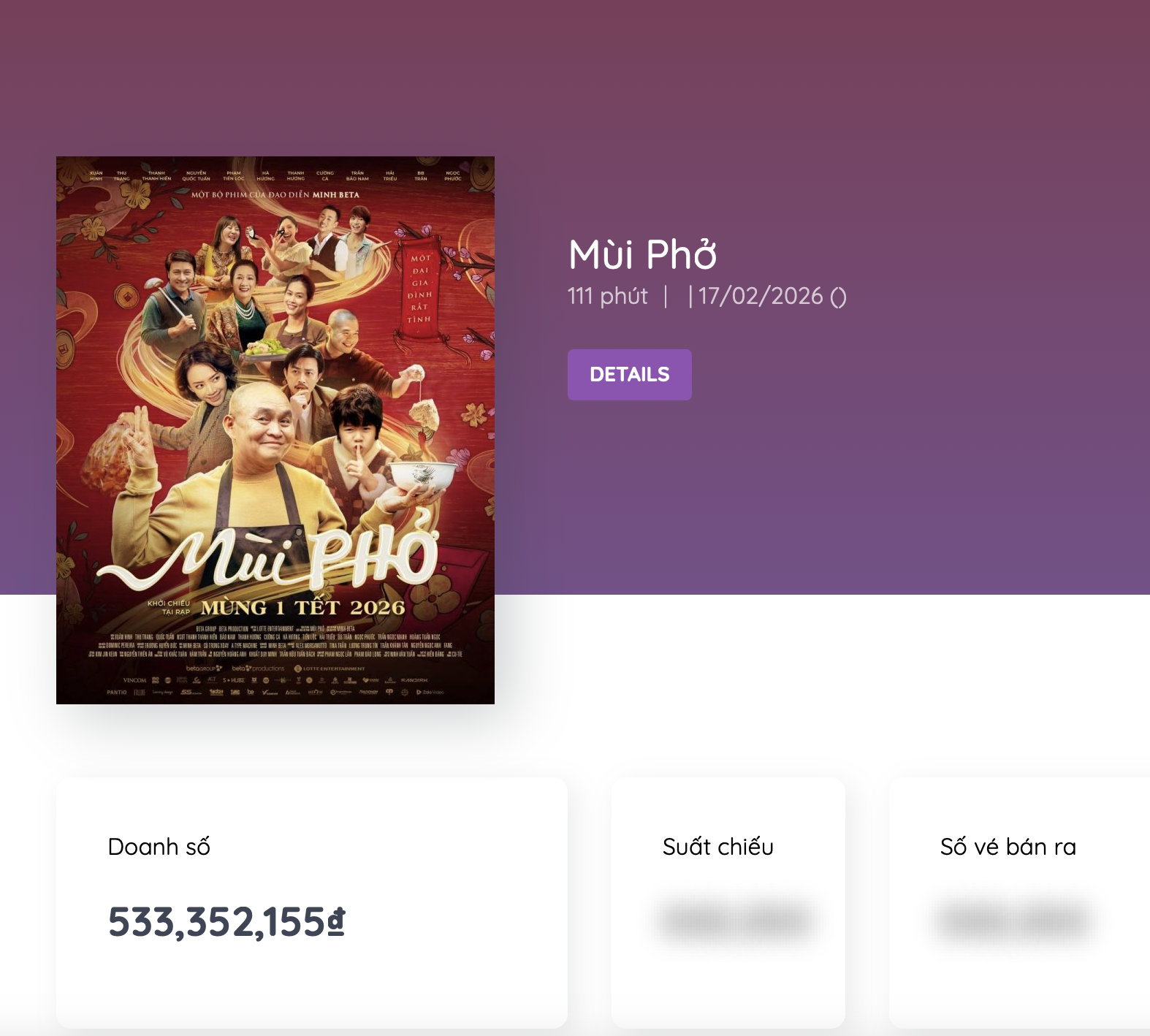 Trong khi đó, Mùi phở của Minh Beta - bộ phim Tết ra mắt đầu tiên - dù nhận nhiều ý kiến trái chiều nhưng hiện đang đứng thứ 2 về doanh số vé đặt trước với 533 triệu đồng. Nhà ba tôi một phòng - bộ phim điện ảnh đầu tiên do Trường Giang đóng chính kiêm đạo diễn chỉ đạt 516 triệu đồng. Báu vật trời cho của Lê Thanh Sơn với sự góp mặt của bộ đôi Tuấn Trần và Phương Anh Đào từ phim Mai đang xếp cuối với 121 triệu đồng.