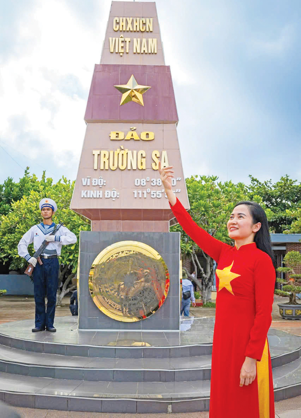 Nhà báo Phong Điệp - Báo Nhân Dân lần thứ hai tới Trường Sa tâm sự: “Thời gian trên đảo rất ngắn nhưng tôi vẫn luôn mặc áo dài để được dạo bước ở Trường Sa, đi lễ chùa, để thấy Tổ quốc trong tim. Với tôi, đây là chuyến đi của tâm hồn, để cảm nhận những điều thiêng liêng một cách bình dị”.