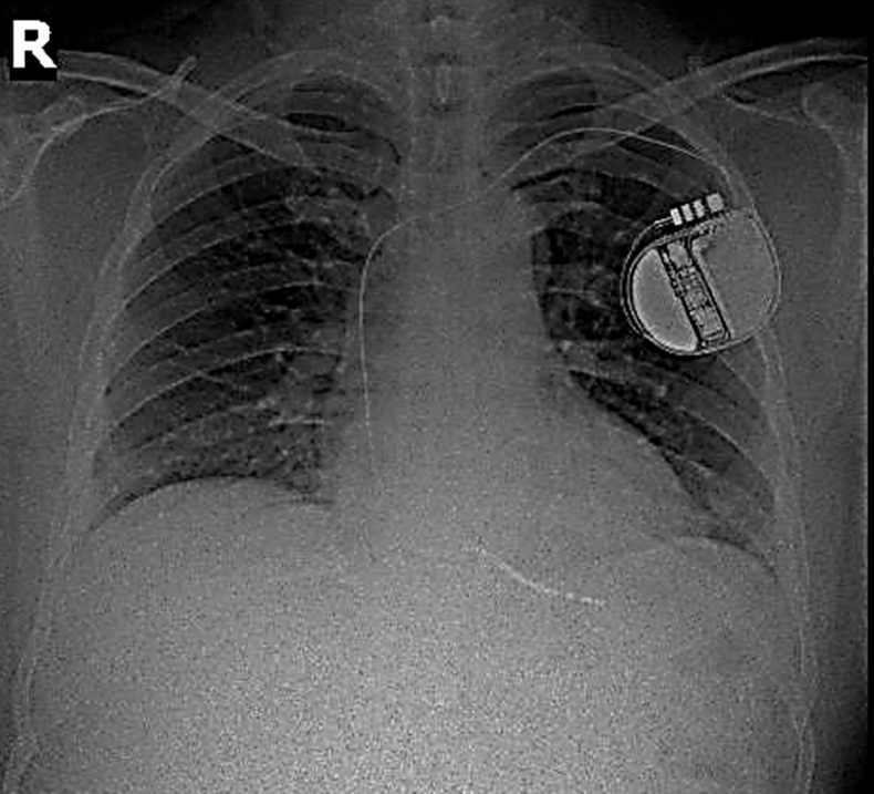 Hình ảnh máy phá rung tim trên phim chụp Xquang. Ảnh: BVCC