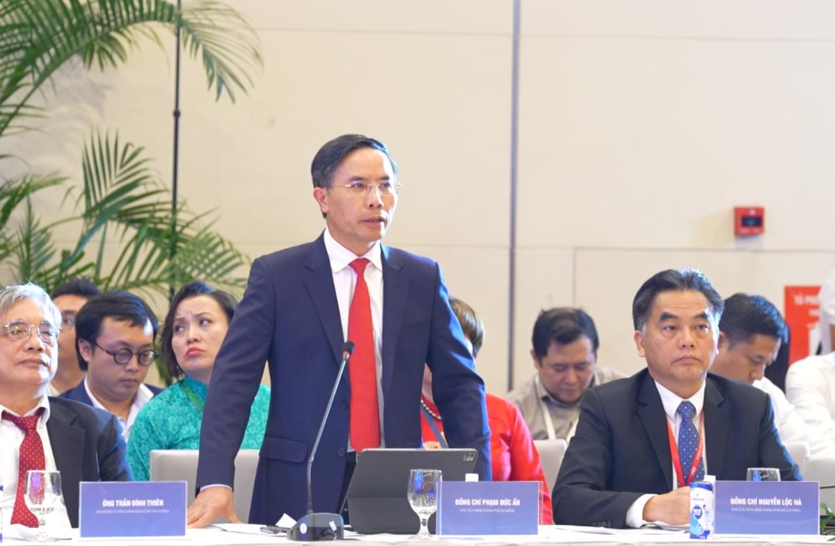 Phó Bí thư Thành ủy, Chủ tịch UBND thành phố Phạm Đức Ấn phát biểu tại Phiên họp cấp cao Toàn cảnh Kinh tế tư nhân lần thứ nhất (ViPEL 2025). Ảnh: Baodanang.vn