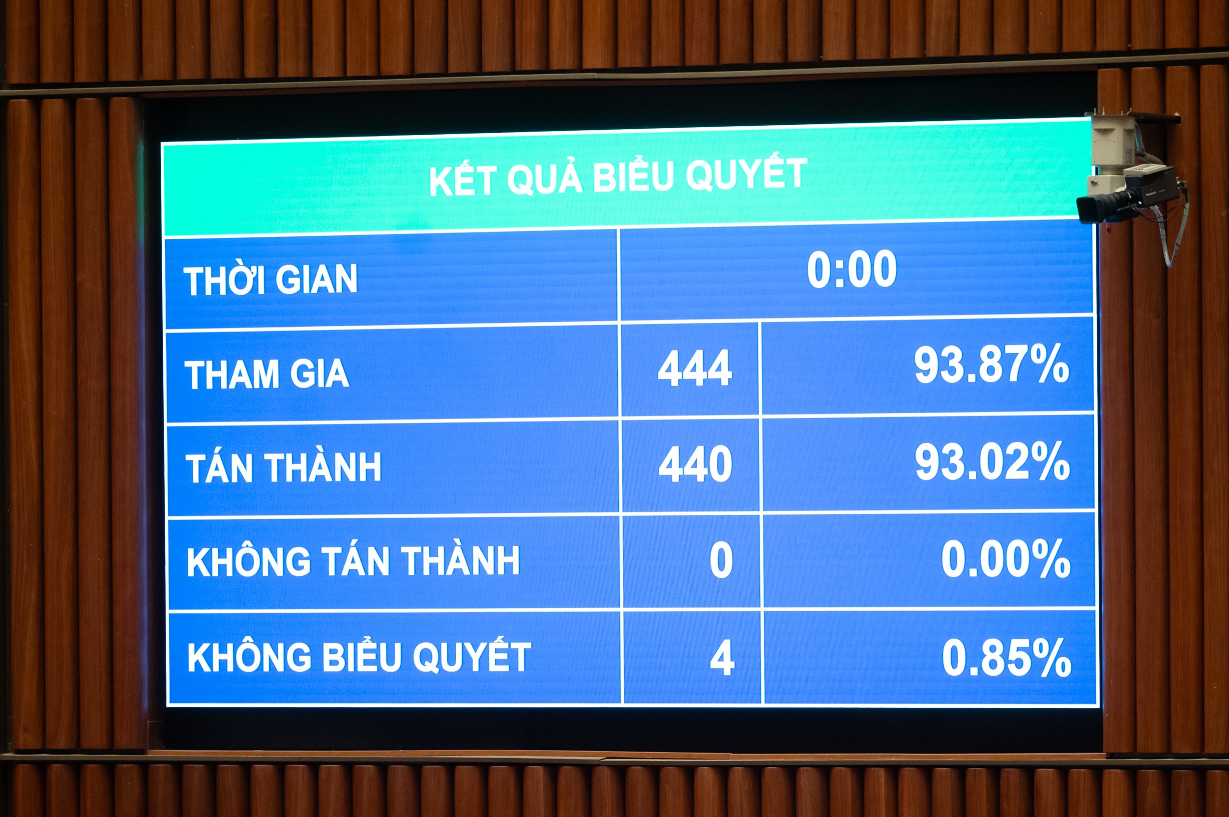 Quốc hội biểu quyết thông qua Luật Phòng, chống ma túy (sửa đổi) với 440/444 ĐBQH có mặt tán thành. Ảnh: Phạm Thắng