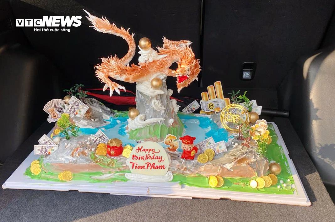 Bánh kem hình rồng phối hợp tiểu cảnh được anh Hữu tỉ mỉ tạo hình.