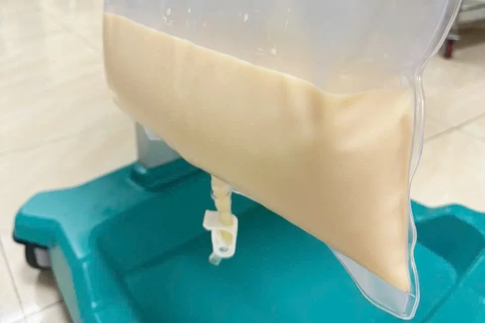 Huyết tương người bệnh trắng đục như sữa vào thời điểm nhập viện của bệnh nhân có thói quen uống rượu mỗi ngày. Ảnh: Trung tâm Y tế khu vực Cẩm Khê.