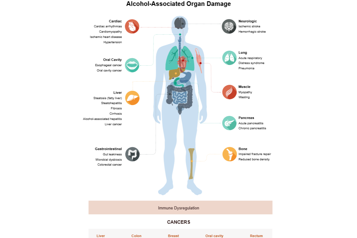 Theo các chuyên gia tại Viện Quốc gia về Lạm dụng và Nghiện Rượu Mỹ (NIAAA), tác động của rượu bia không chỉ dừng lại ở cảm giác lâng lâng sau vài ly. Khi đi vào cơ thể, nó len lỏi qua từng cơ quan và để lại những hậu quả khó lường.