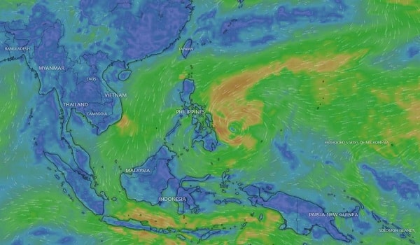 Bão Nokaen hoạt động trên khu vực phía Đông Philippines - Ảnh: Windy.