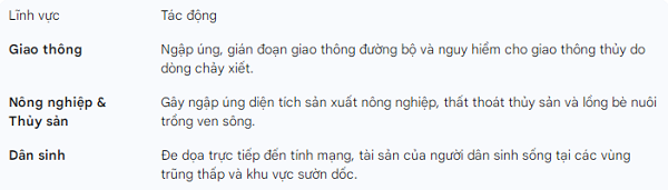 Trung tâm Dự báo khí tượng thủy văn quốc gia cho biết diễn biến lũ trên các sông từ Thừa Thiên - Huế đến Khánh Hòa trong 12 giờ tới được dự báo là rất phức tạp và nguy hiểm, với nhiều sông duy trì ở mức cao trên báo động 3 (BĐ3) và có nguy cơ cao xảy ra lũ quét, sạt lở đất trên diện rộng. Cảnh báo rủi ro thiên tai đã được nâng lên cấp độ 4, mức rất cao, đòi hỏi các địa phương và người dân cần hành động khẩn cấp.