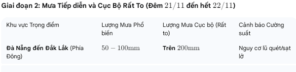 Đợt mưa lần này được chia thành hai giai đoạn chính, với cường độ và phạm vi ảnh hưởng khác nhau, nhưng đều tập trung vào khu vực có địa hình dốc và dễ bị tổn thương.