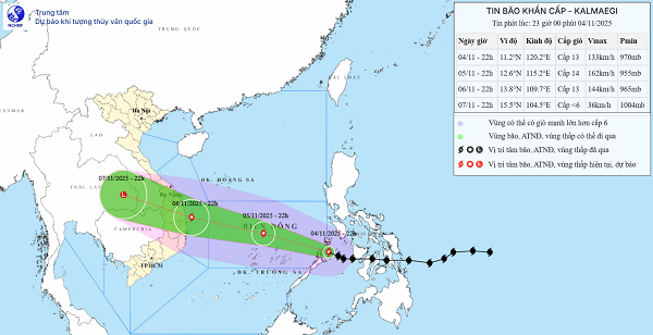 Theo Trung tâm Dự báo khí tượng thủy văn quốc gia, ngày 5.11, bão Kalmaegi đã vượt qua Philippines và tiến vào Biển Đông, trở thành cơn bão số 13 trong năm, gây mưa lớn và thời tiết nguy hiểm trên các vùng biển.
