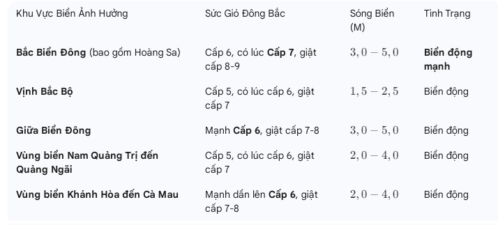 Diễn biến trên biển là điểm đáng lo ngại nhất của đợt không khí lạnh này, cảnh báo tàu thuyền và các hoạt động hàng hải: