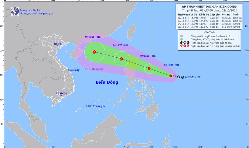 Bản đồ dự báo quỹ đạo và cường độ áp thấp nhiệt đới phát lúc 2 giờ ngày 2/10.