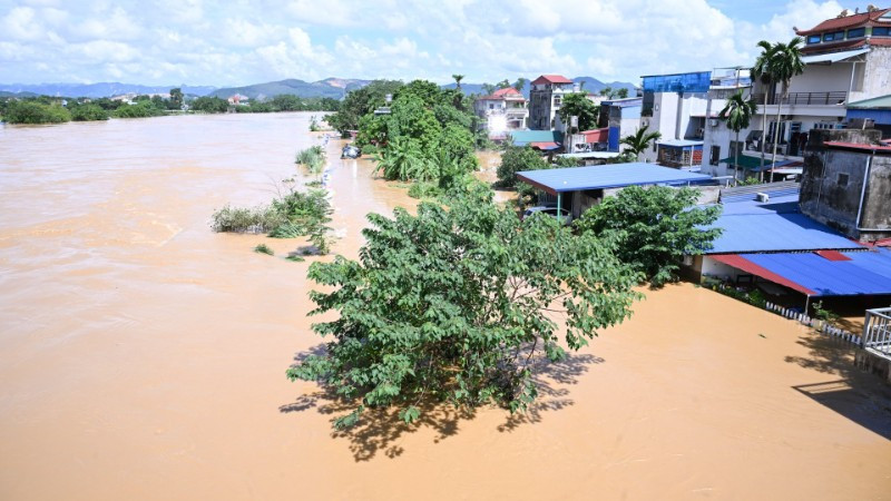 Khu vực gần cầu Bến Tượng qua sông Cầu thuộc phường Phan Đình Phùng, tỉnh Thái Nguyên bị ngập nặng. (Ảnh: TRẦN HẢI)