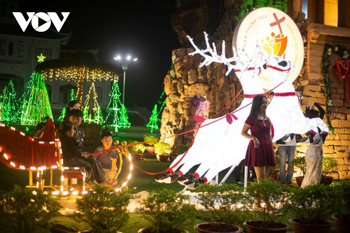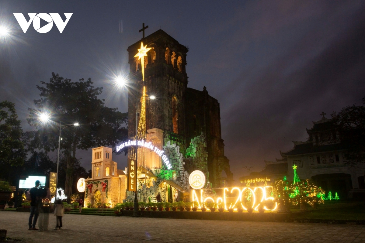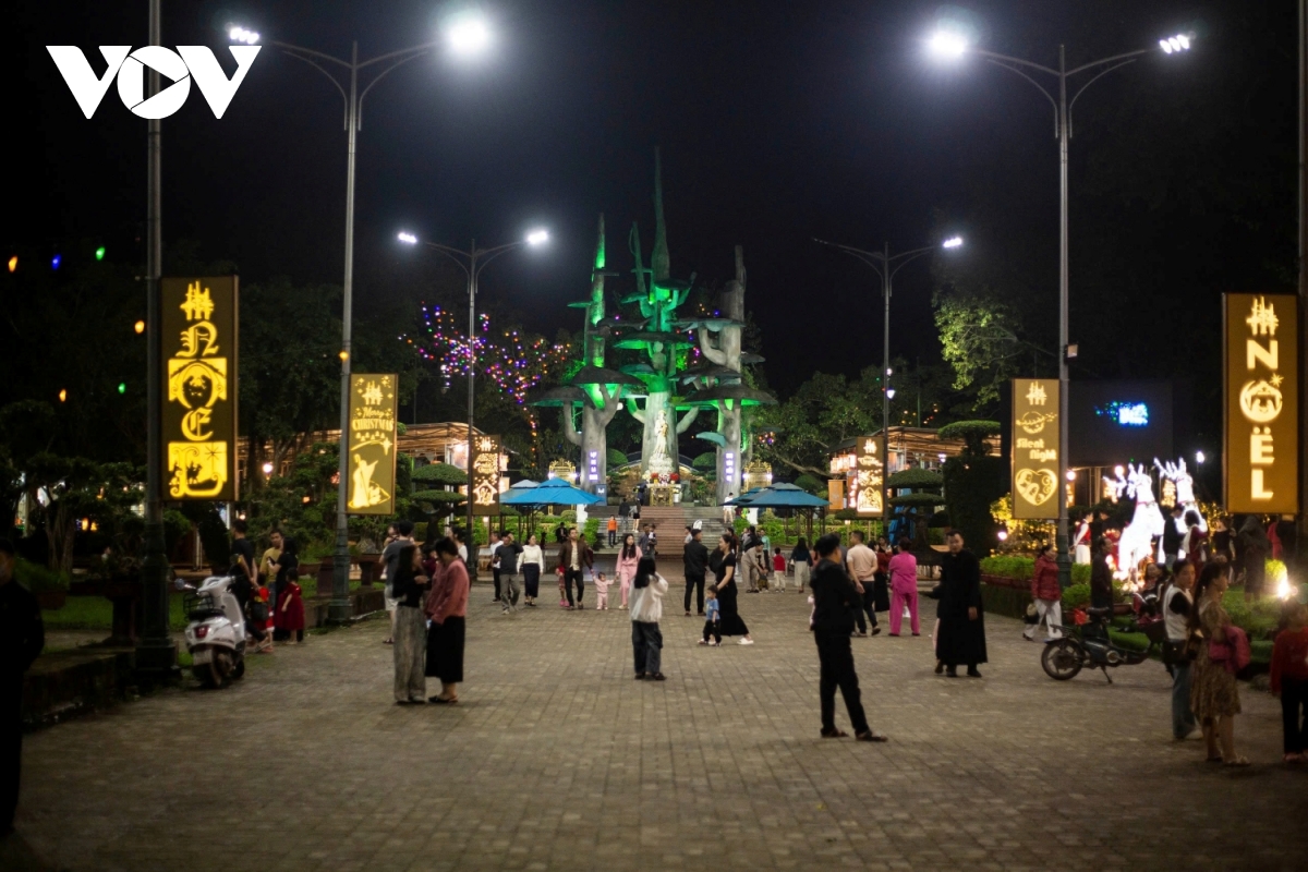 Những ngày này, tại Trung tâm hành hương Đức Mẹ La Vang ở xã Hải Lăng, tỉnh Quảng Trị, rất đông giáo dân, du khách đến tham quan, cảm nhận không khí lễ Giáng sinh. Trung tâm hành hương Đức Mẹ La Vang lung linh những ánh đèn từ cổng vào, trên con đường dẫn lên linh đài, bên phải là nơi một hang đá được tạo dựng kỳ công ngay dưới chân tháp chuông cổ.