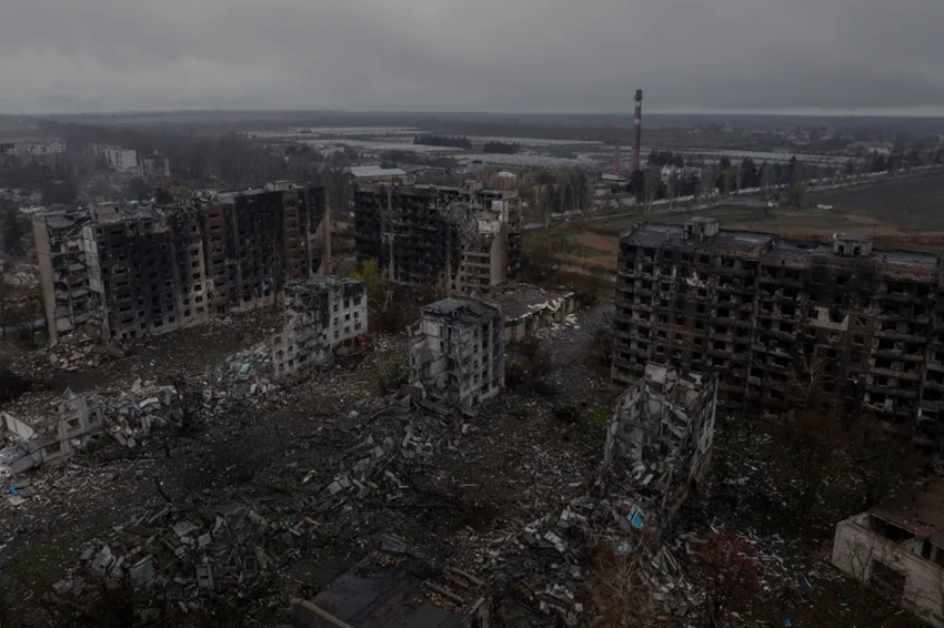 Các tòa nhà chung cư bị phá hủy và hư hại do cuộc không kích của quân đội Nga tại Kostiantynivka. Ảnh: Reuters