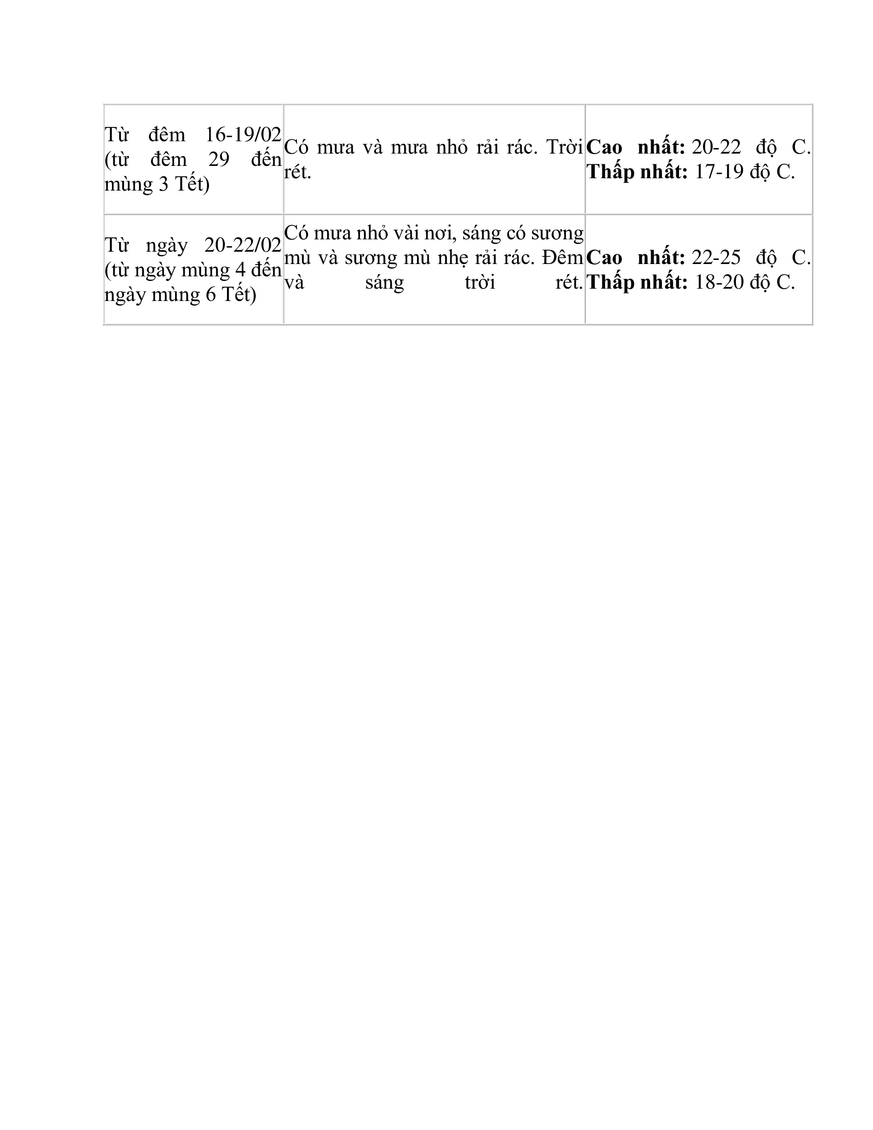 Thời tiết từ 27 tháng Chạp đến mùng 6 Tết Bính Ngọ tại Hà Nội và cả nước