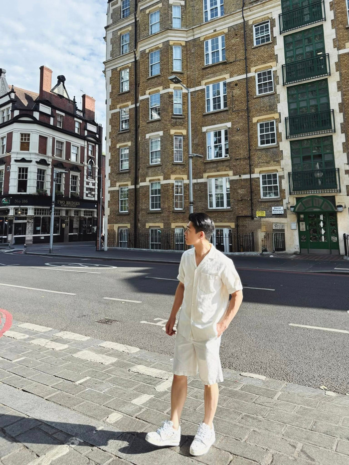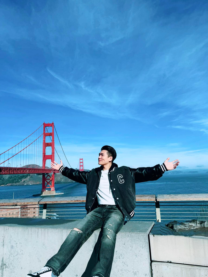 Phong cách thời trang của Đỗ Quang Vinh là sự hòa quyện giữa sự thoải mái và tiện dụng, nhưng vẫn toát lên vẻ lịch lãm rất riêng. Điều này thể hiện rõ trong các chuyến du lịch hay hoạt động cá nhân, nơi anh khéo léo thể hiện gu thẩm mỹ hiện đại, tinh tế và đầy cá tínhqua những bộ trang phục. Ảnh: FBNV