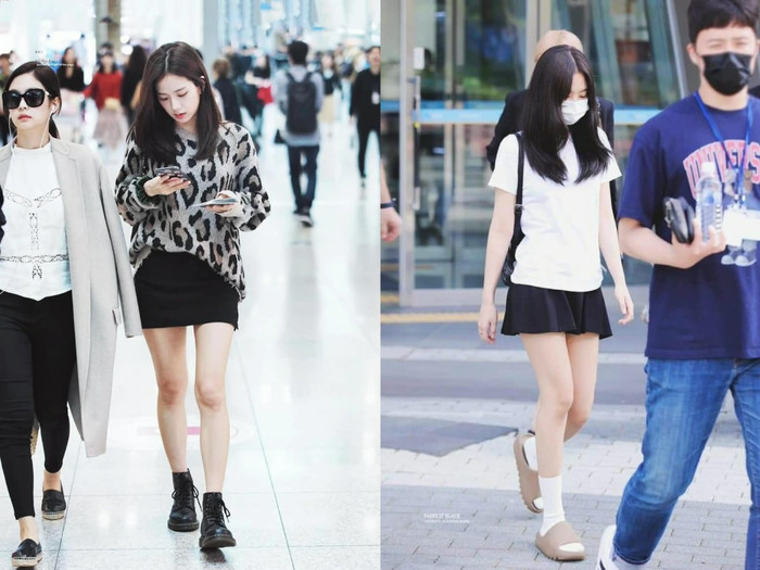 Jisoo và Jennie ưa thích diện chân váy ngắn khi ra sân bay.