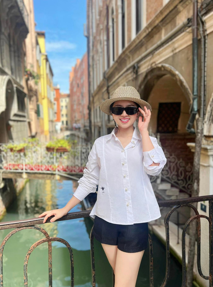 Trong những chuyến du lịch, Mỹ Duyên ưa chuộng chọn những tông màu đơn giản như "đen - trắng". Đây là tông màu giúp Mỹ Duyên thêm phần trẻ trung và năng động.