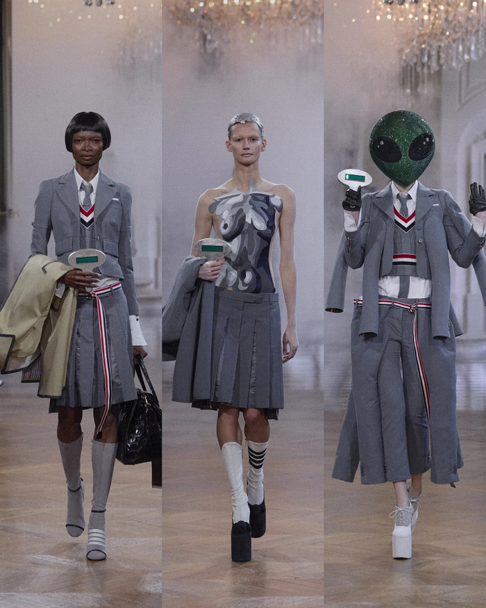 Thom Browne gây ấn tượng với màn trình diễn có những sinh vật ngoài hành tinh khổng lồ. Ảnh: Elle