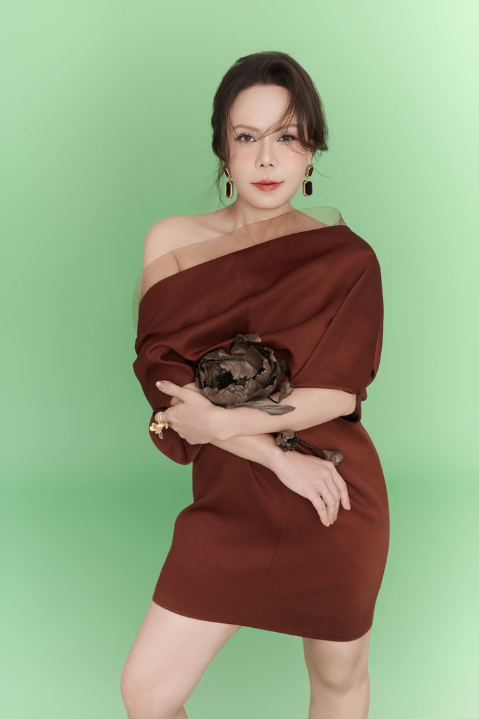 Nghệ sĩ Việt Hương thường hướng tới tông màu rực rỡ nhưng vẫn dễ chịu như xanh lá cây, hồng fuchsia, hồng phấn, nâu đỏ hoặc trắng ngọc trai, giúp tôn làn da châu Á và tạo cảm giác tươi trẻ. Ảnh: FBNV