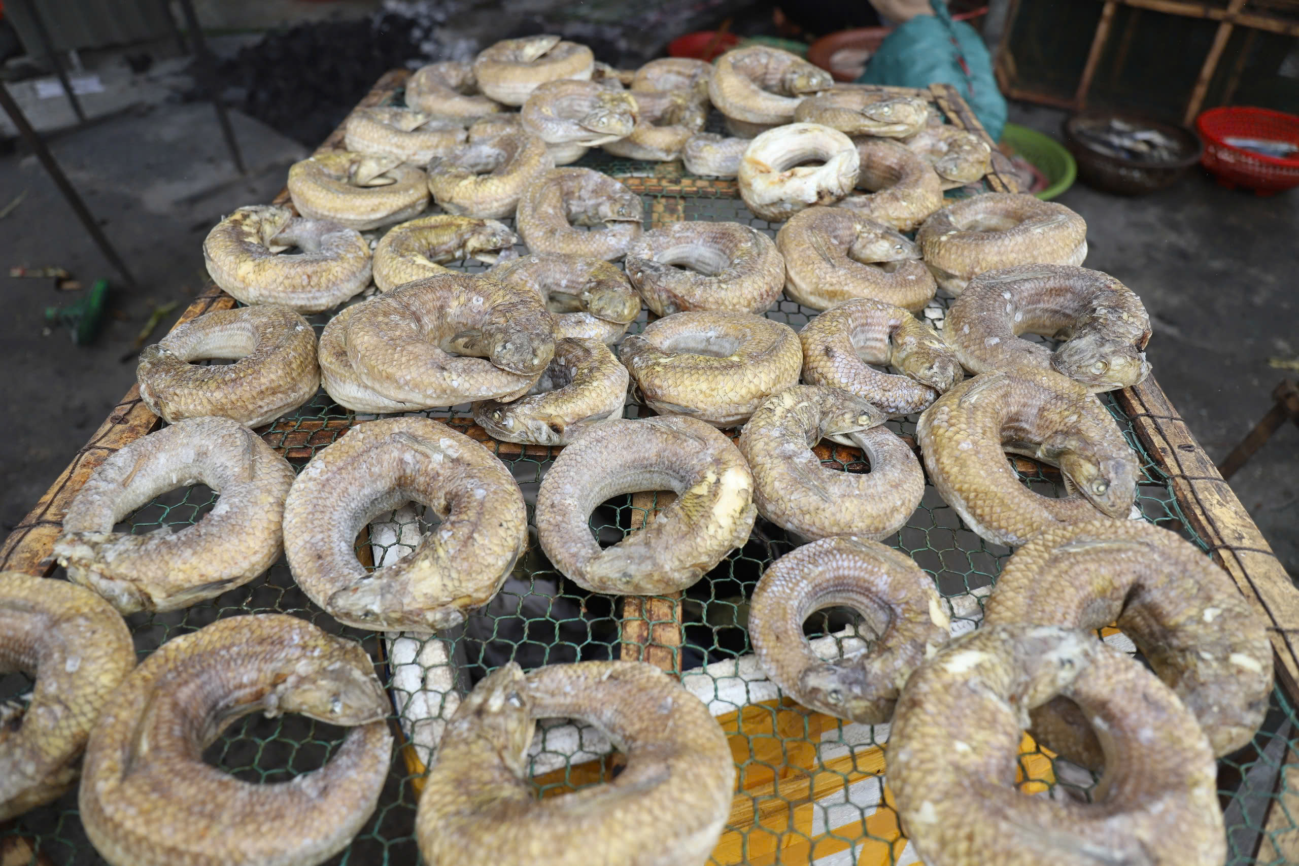 Cá sau khi nướng được phơi tại các cơ sở