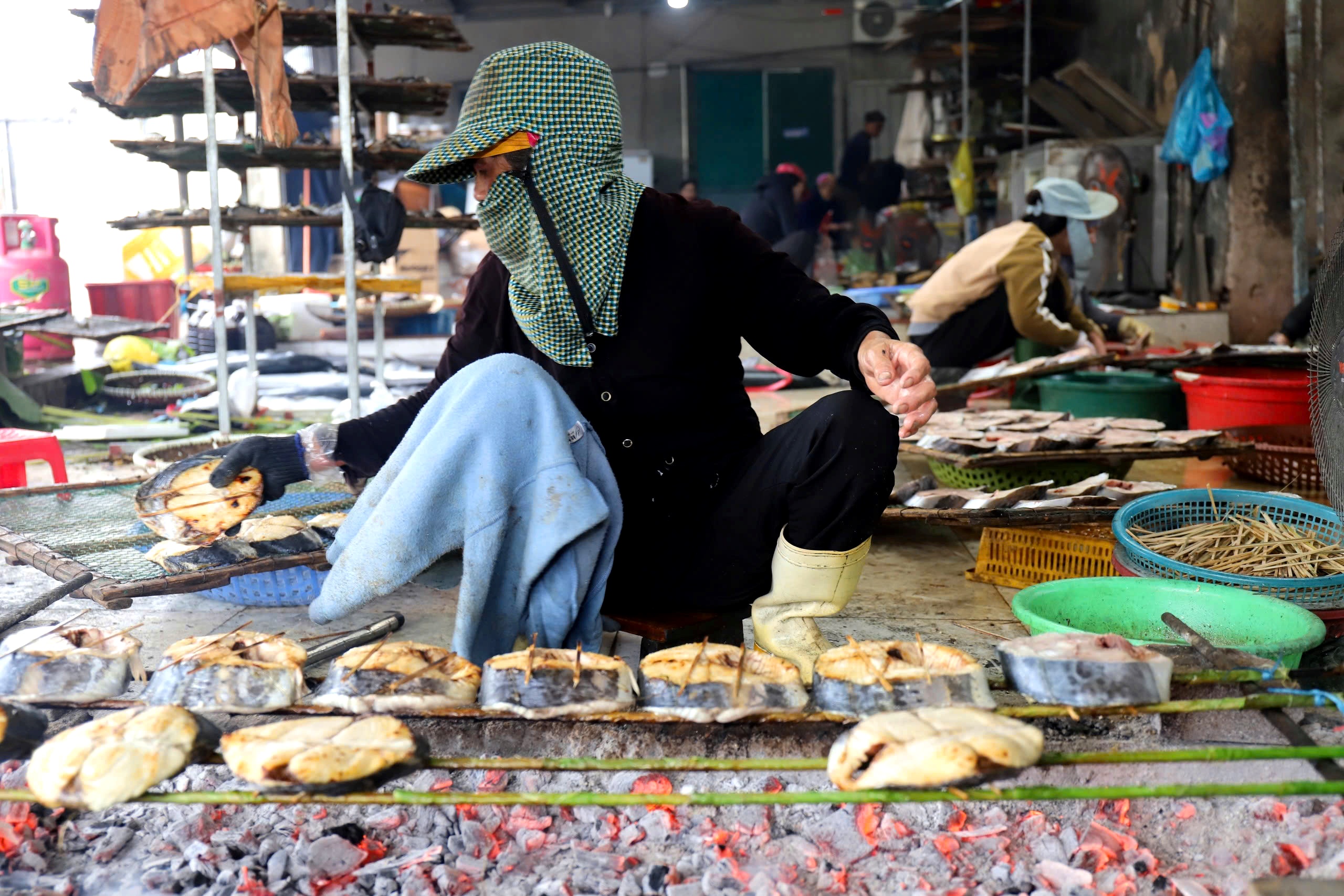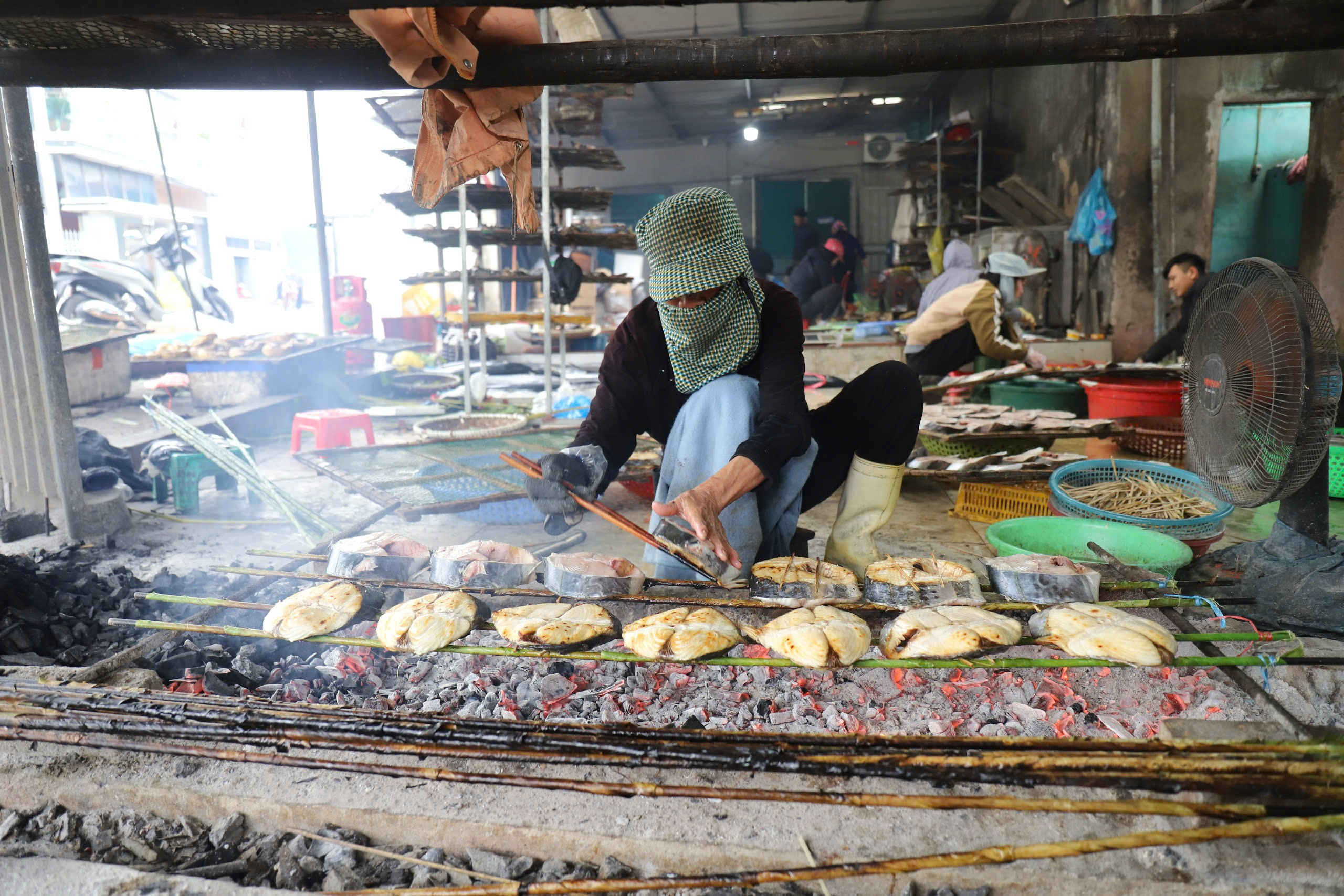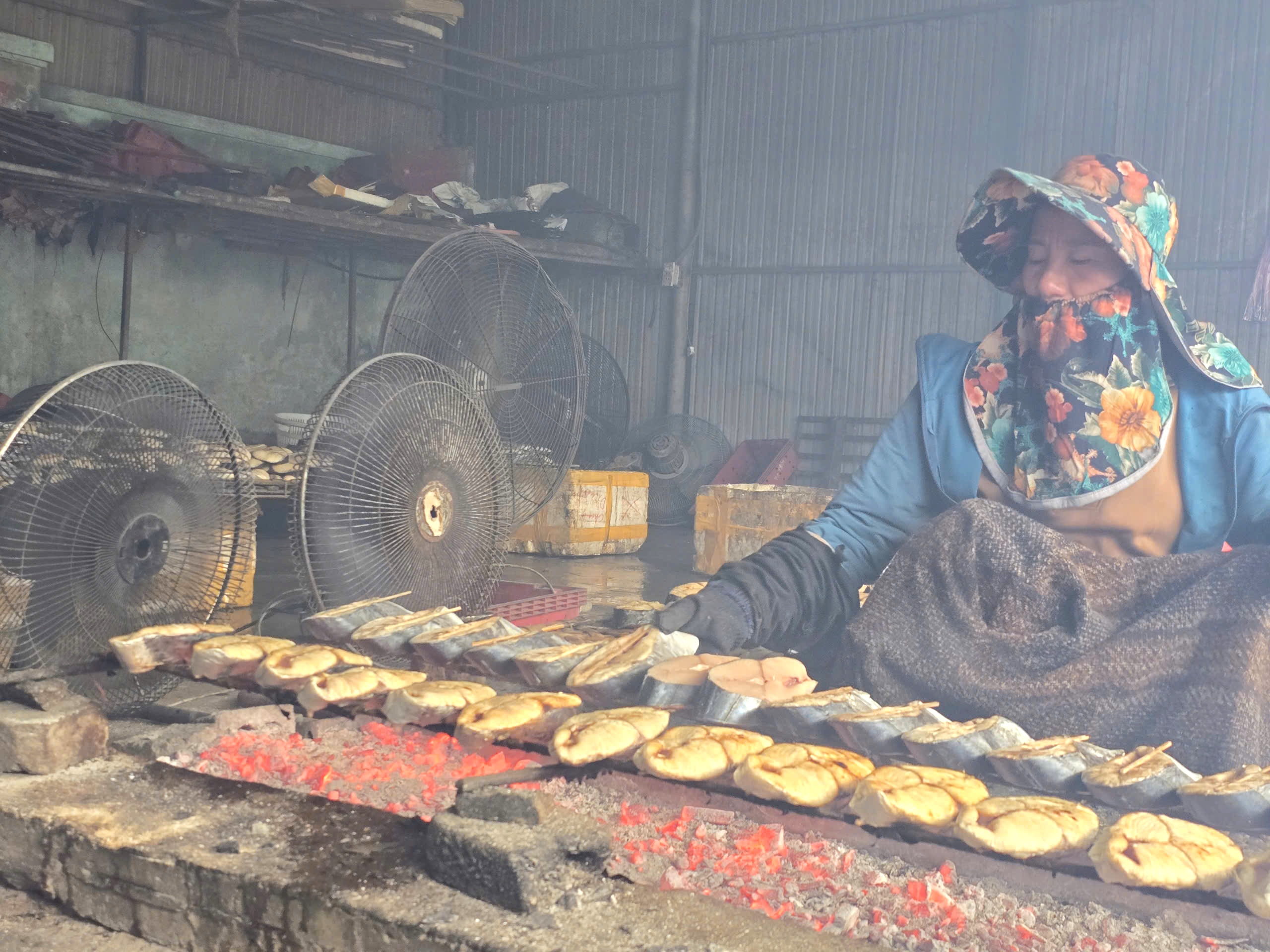 Công việc nướng cá khá bận rộn, phải thức dậy từ sớm