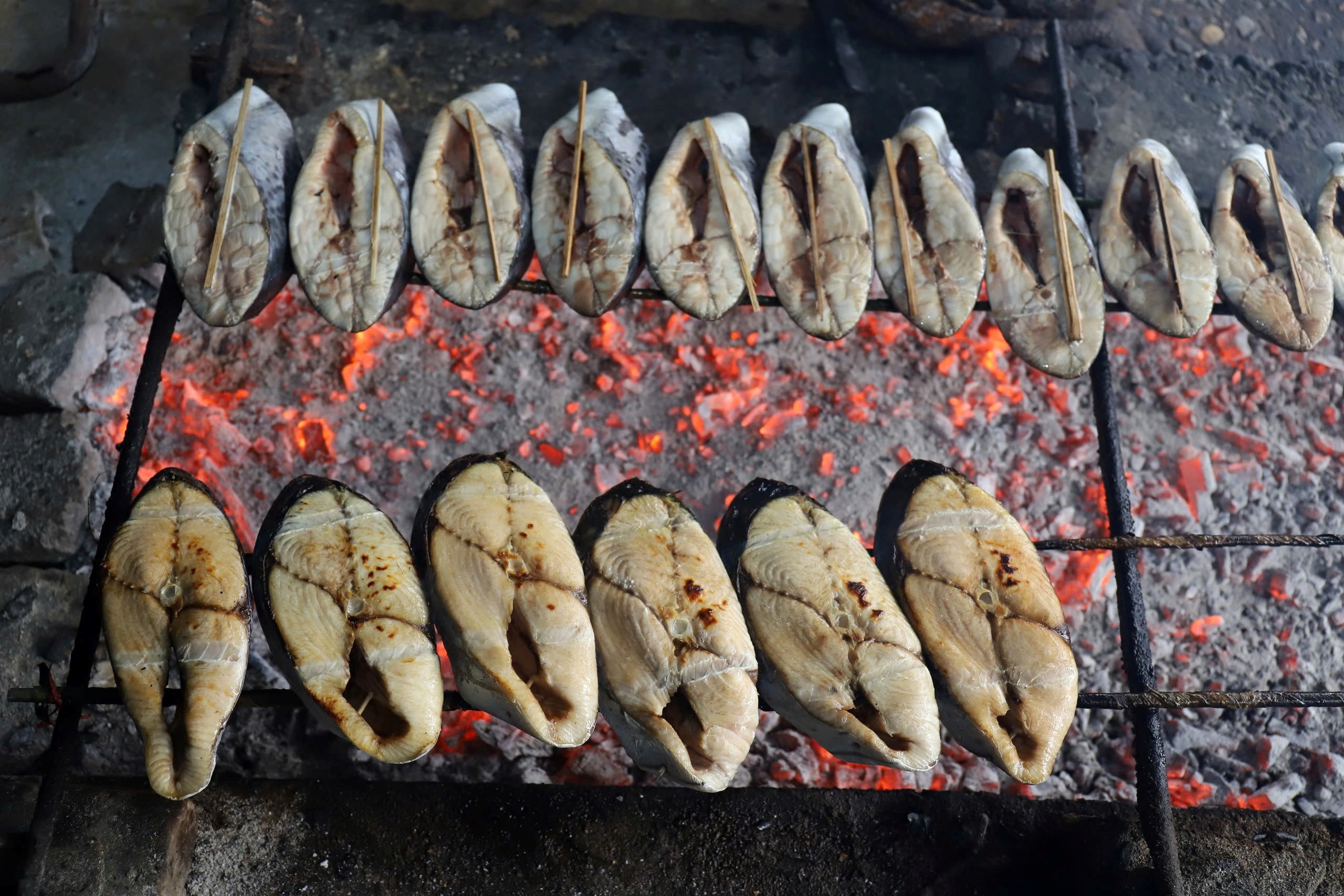 Cá được nướng cẩn thận, khéo léo để đảm bảo thơm ngon, chất lượng