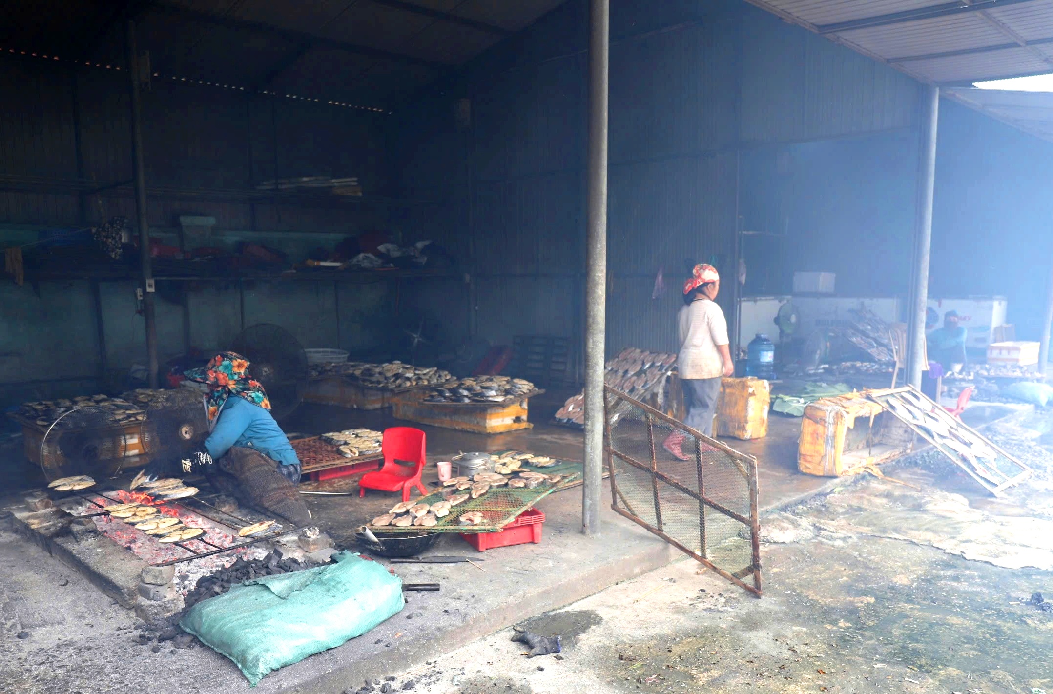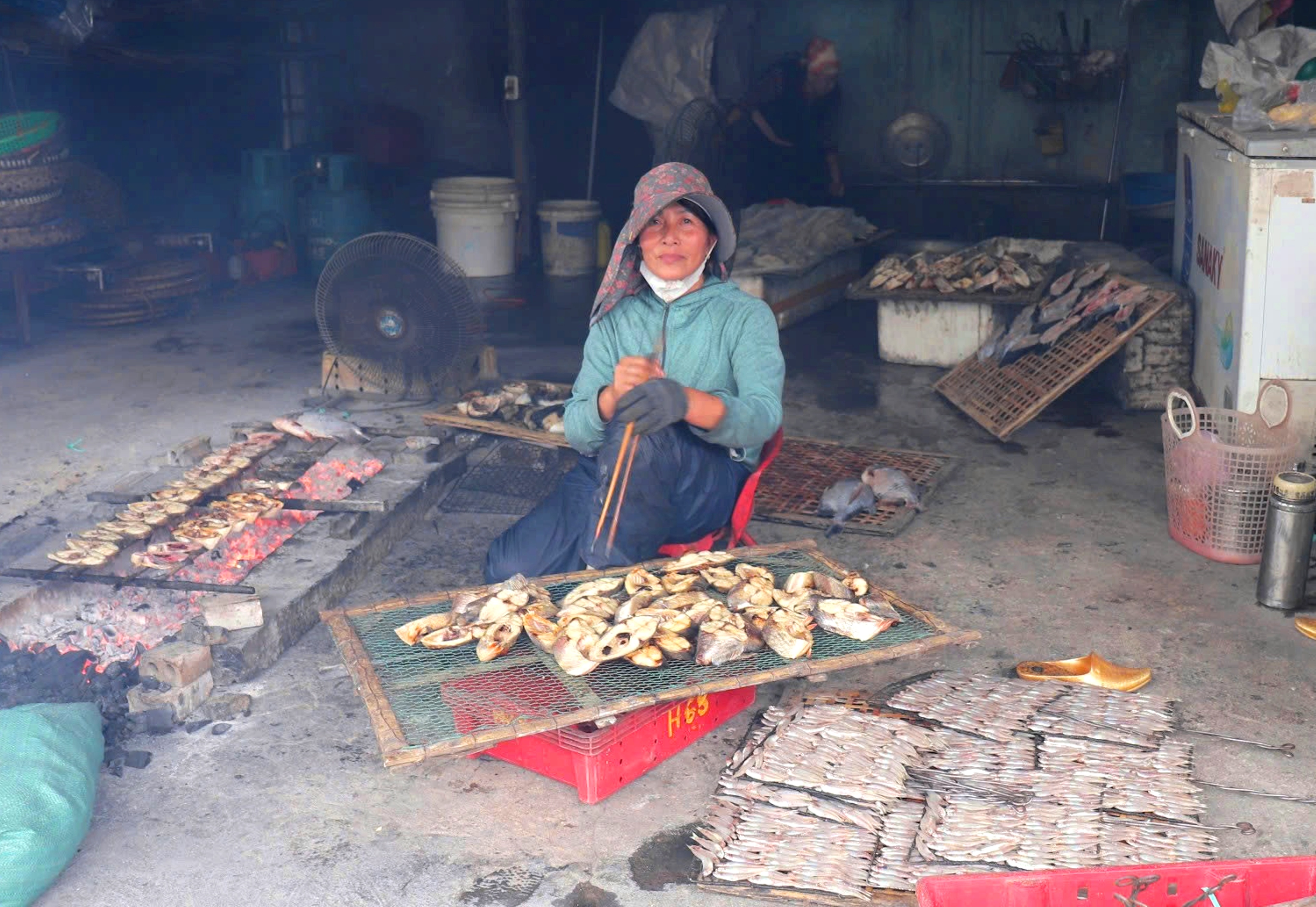 Công việc nướng cá chủ yếu do chị em phụ nữ đảm nhận