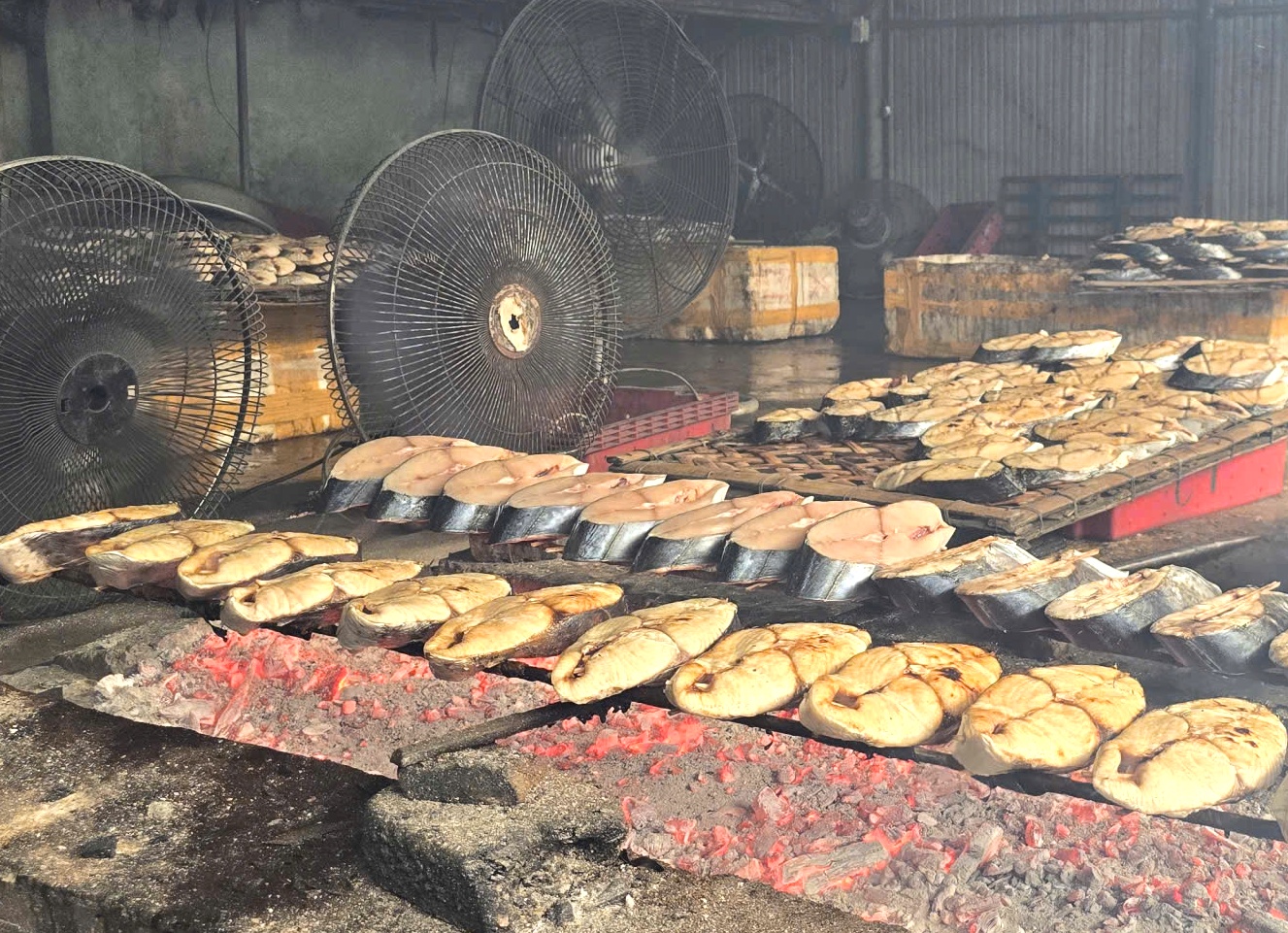 Cảnh tất bật tại cơ sở nướng cá ngày cận tết