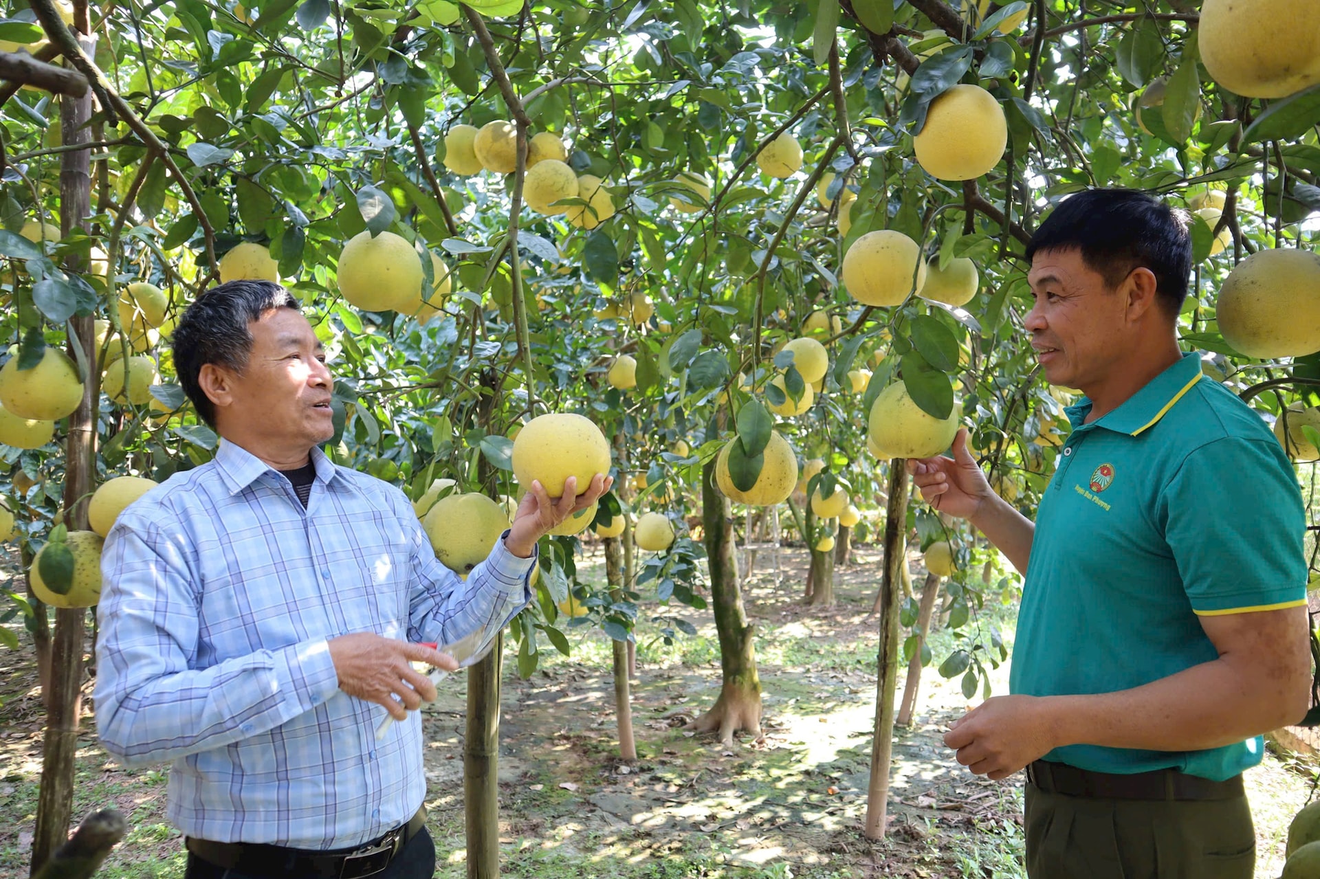 Không chỉ làm kinh tế giỏi, ông Lê Văn Tiu còn là Chị hội trưởng Chi hội làm vườn của xã, thường xuyên hỗ trợ các hộ trồng bưởi trong vùng nắm bắt khoa học kỹ thuật để cây bưởi vừa đạt chất lượng, sản lượng. So với những năm trước, vụ bưởi năm nay sản lượng tăng do cây lớn hơn, kỹ thuật chăm sóc tốt hơn. Giá bán tuy “mềm” hơn nhưng nhờ sản lượng cao, tổng thu nhập của nông dân vẫn tăng đáng kể. “Tính ra, nếu tiêu thụ hết, cả xã có thể thu về vài chục tỷ đồng từ cây bưởi”, ông Tiu ước đoán.