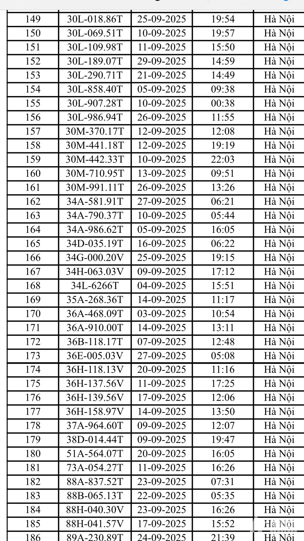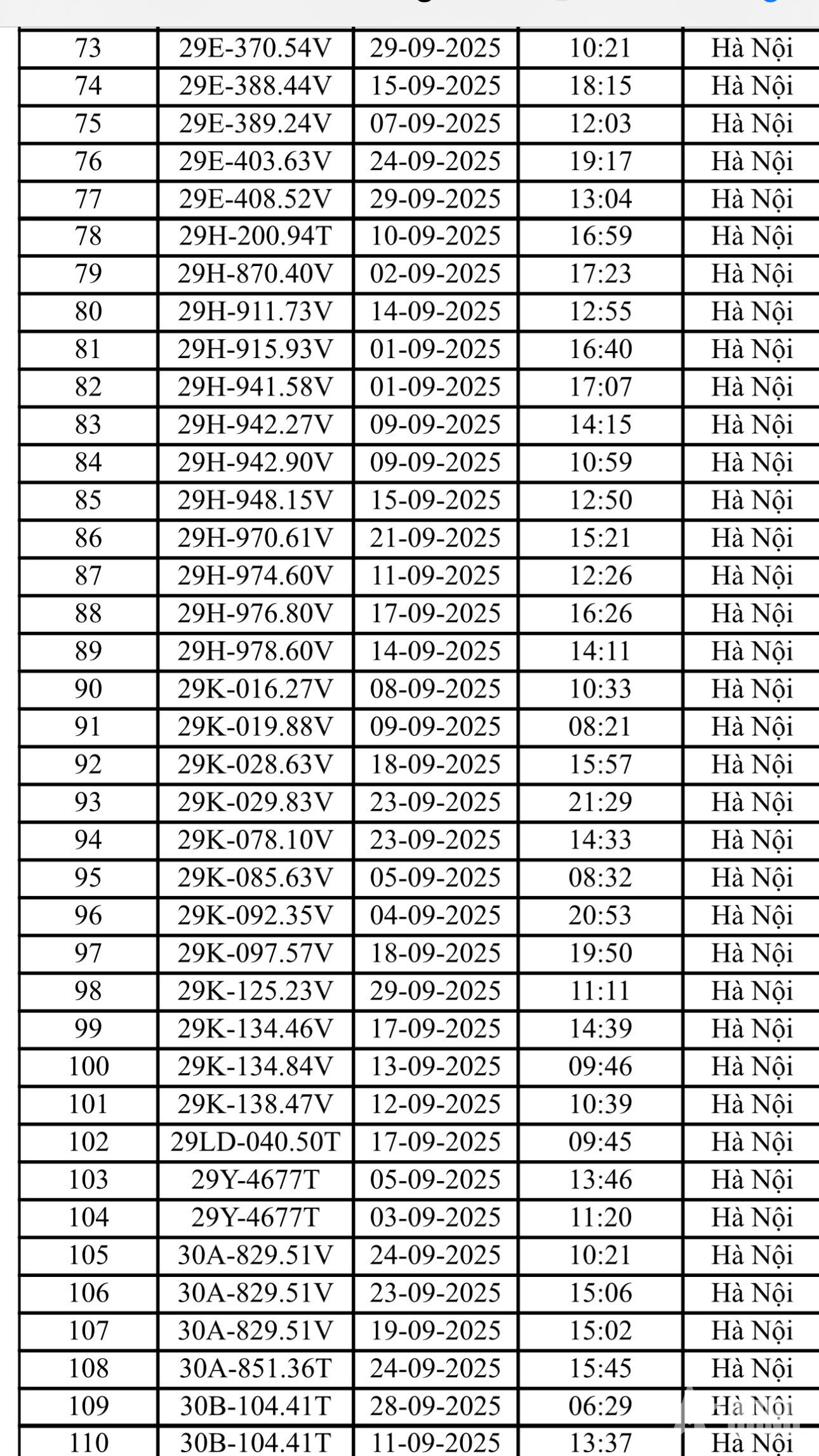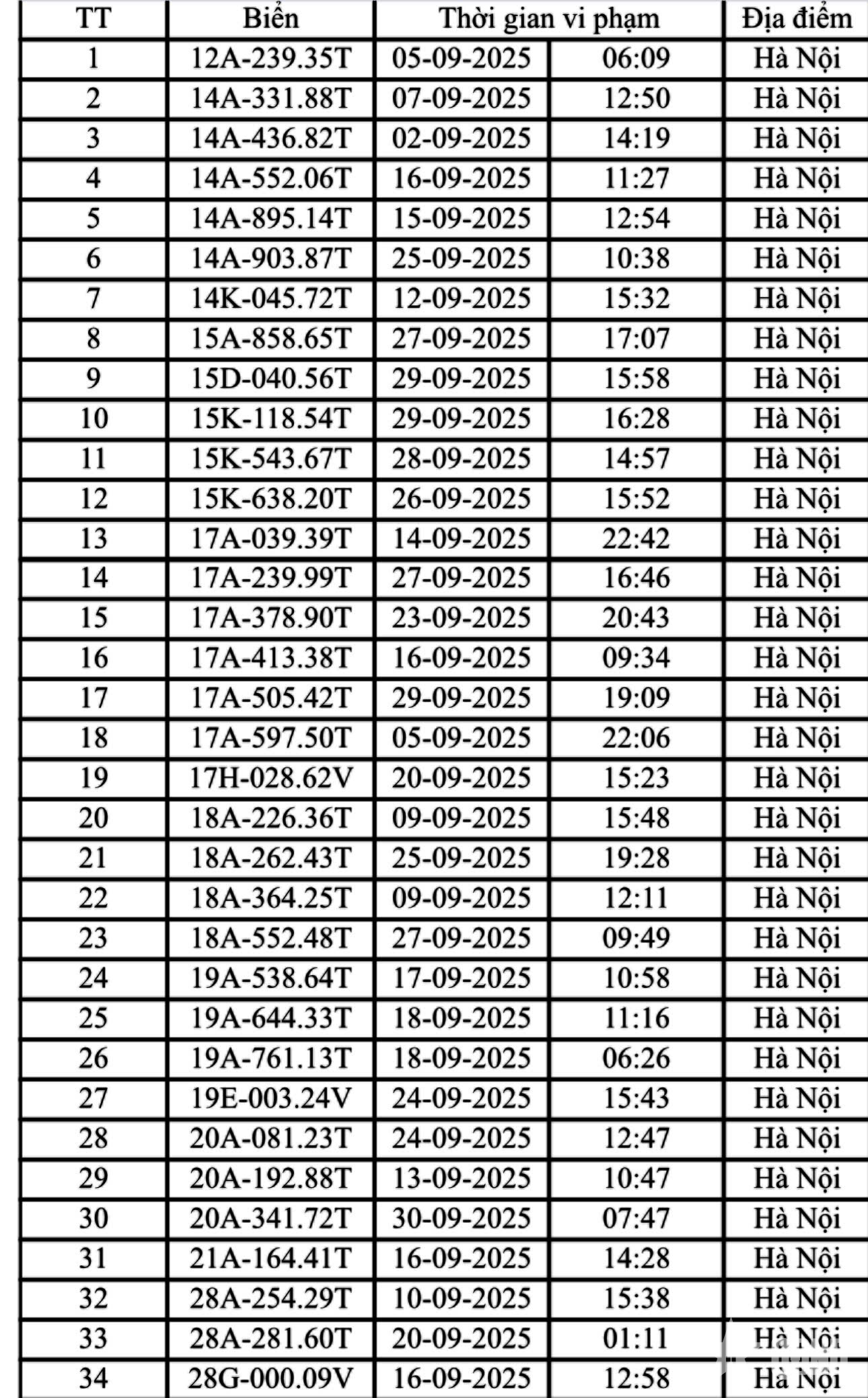 Danh sách các trường hợp ô tô bị xử phạt nguội.