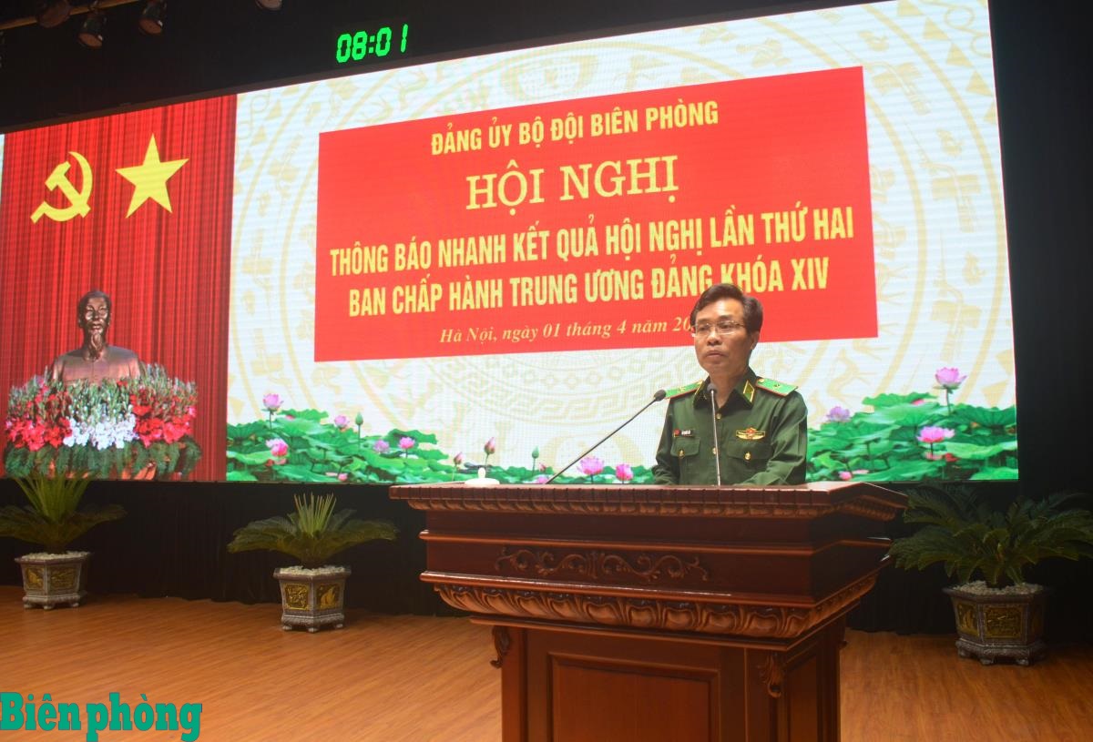 Tại hội nghị, Thiếu tướng Vũ Quốc Ân đã thông báo nhanh tới cán bộ, đảng viên những nội dung trọng tâm của Hội nghị lần thứ hai Ban Chấp hành Trung ương Đảng khóa XIV.