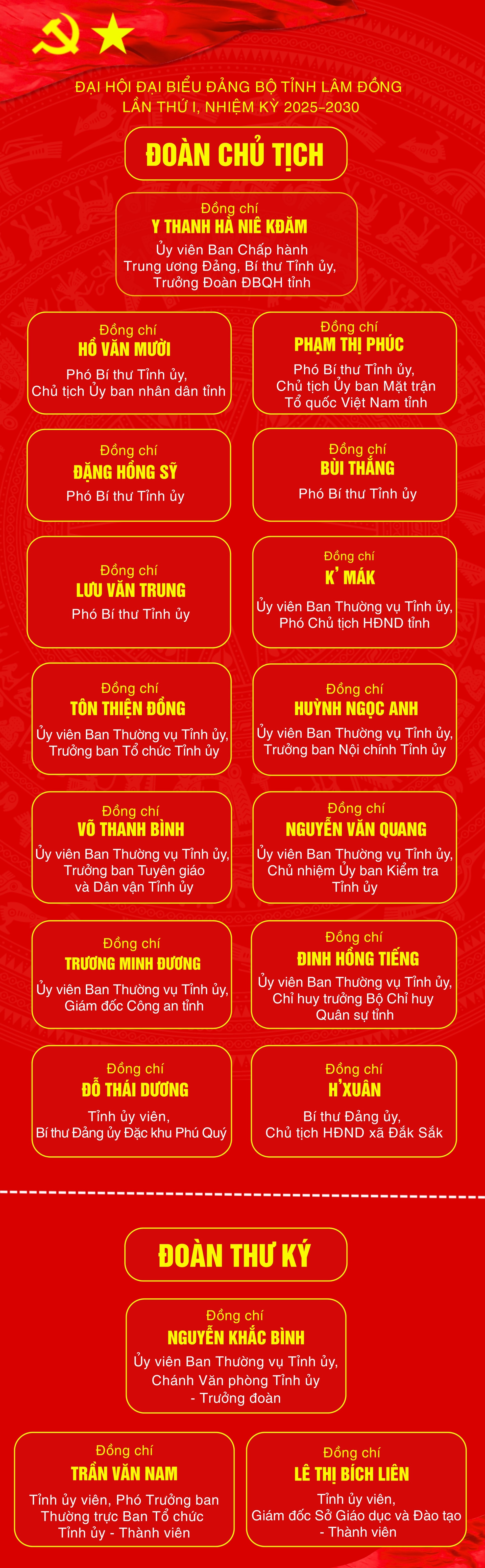 Phát biểu kết thúc phiên trù bị, đồng chí Y Thanh Hà Niê Kđăm, Ủy viên Ban Chấp hành Trung ương Đảng, Bí thư Tỉnh ủy, Trưởng Đoàn Đại biểu Quốc hội Khóa XV tỉnh Lâm Đồng yêu cầu các đại biểu dự Đại hội nêu cao tinh thần đoàn kết, thống nhất, giữ vững nguyên tắc tập trung dân chủ, phát huy tinh thần trách nhiệm, nhất là trong việc thảo luận, biểu quyết, quyết định những vấn đề quan trọng của Đại hội; thực hiện đúng với phương châm: “Đoàn kết - Dân chủ - Kỷ cương - Đột phá - Phát triển” để Đại hội đại biểu Đảng bộ tỉnh Lâm Đồng lần thứ I thực sự là Đại hội của trí tuệ, thể hiện ý chí, niềm tin và kỳ vọng của Đảng bộ, chính quyền và Nhân dân các dân tộc tỉnh Lâm Đồng trong việc thực hiện mục tiêu: “Xây dựng Đảng bộ trong sạch, vững mạnh; lãnh đạo phát triển toàn diện, lấy ổn định làm nền tảng, lấy phát triển kinh tế - xã hội là nhiệm vụ trung tâm, lấy hạnh phúc và ấm no của Nhân dân là mục tiêu phấn đấu; đến năm 2030, tỉnh Lâm Đồng trở thành tỉnh phát triển khá, là một trong những cực tăng trưởng năng động của khu vực trong kỷ nguyên vươn mình của dân tộc”.