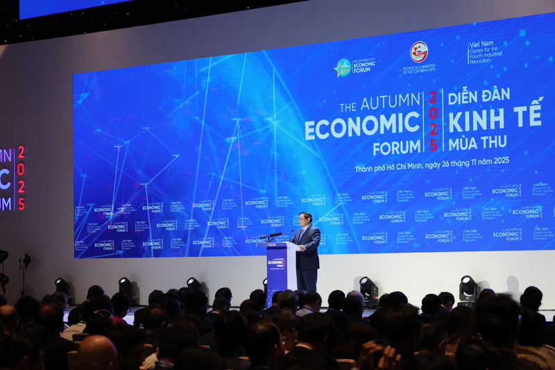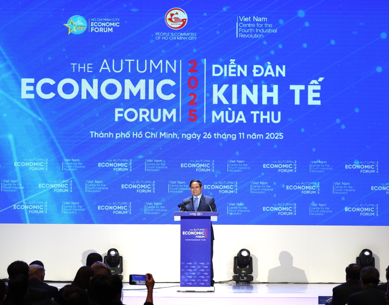 Phát biểu tại sự kiện, Thủ tướng Phạm Minh Chính cho biết, trong không khí rộn ràng của mùa thu Việt Nam, tại thành phố mang tên Chủ tịch Hồ Chí Minh vĩ đại - nơi hội tụ tinh hoa của đất nước, cực tăng trưởng, phát triển năng động, sáng tạo, nơi khởi nguồn của nhiều ý tưởng đổi mới, khát vọng vươn lên và ý chí tiên phong, tự lực tự cường, chúng ta cùng long trọng tổ chức Diễn đàn Kinh tế Mùa Thu năm 2025, với chủ đề "Chuyển đổi xanh trong kỷ nguyên số".