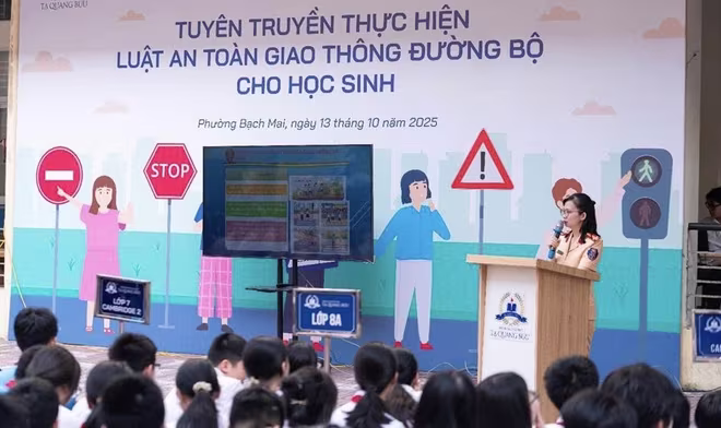 Thực hiện Kế hoạch số 320 ngày 10/9/2025 của Công an TP Hà Nội về “Cao điểm tuyên truyền, kiểm tra, xử lý vi phạm TTATGT đối với học sinh và phụ huynh”, Công an phường Bạch Mai phối hợp với các đơn vị nghiệp vụ Công an Thành phố Hà Nội đã tổ chức buổi tuyên truyền, giáo dục pháp luật về Luật Trật tự, an toàn giao thông đường bộ cho hơn 800 học sinh Trường Trung học cơ sở, Trung học phổ thông Tạ Quang Bửu. Chương trình nhận được sự hưởng ứng tích cực của giáo viên, phụ huynh và học sinh, thể hiện sự quan tâm sâu sắc tới công tác đảm bảo an toàn ngay từ lứa tuổi học đường.