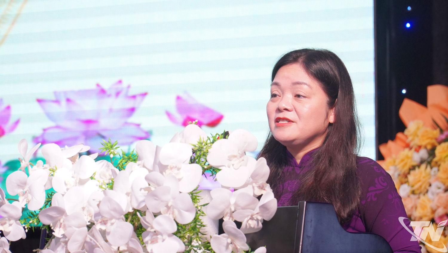 Đồng chí Phó Chủ tịch UBND tỉnh Nguyễn Thị Loan phát biểu tại buổi Lễ.