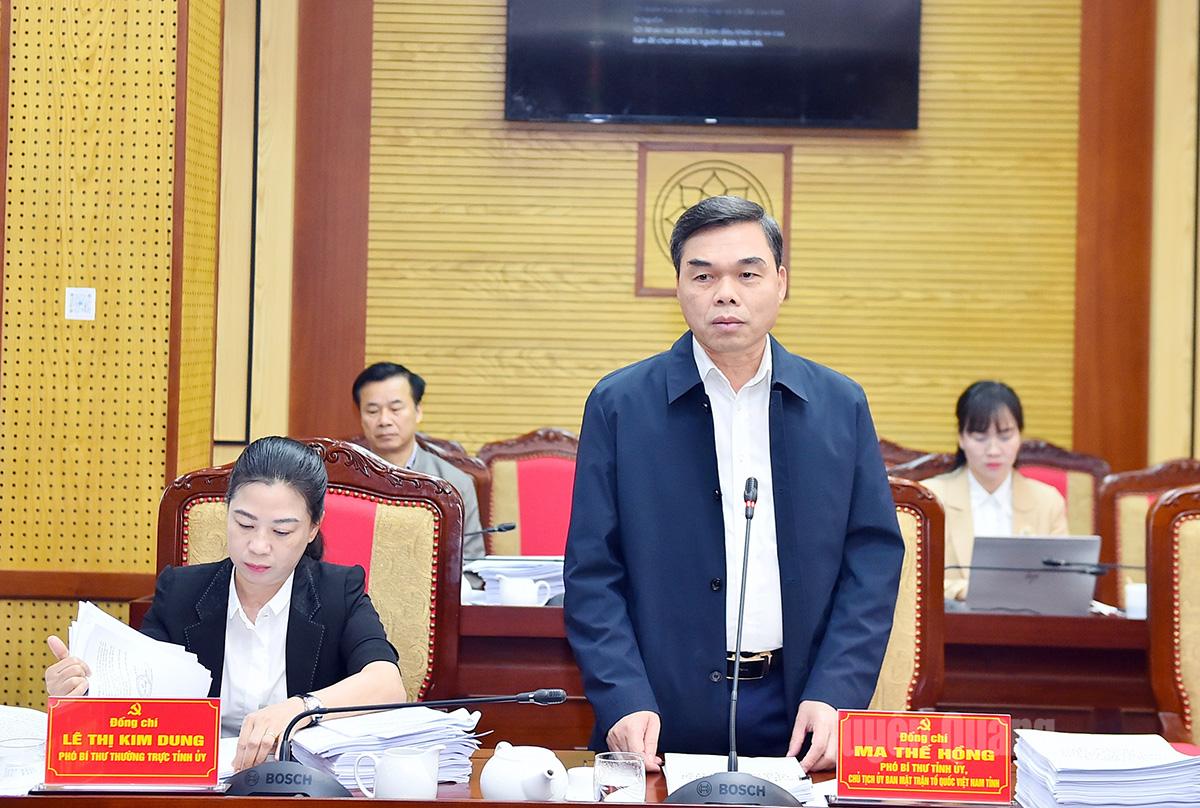 Đồng chí Ma Thế Hồng, Phó Bí thư Tỉnh ủy, Chủ tịch Ủy ban MTTQ tỉnh phát biểu tại cuộc họp.