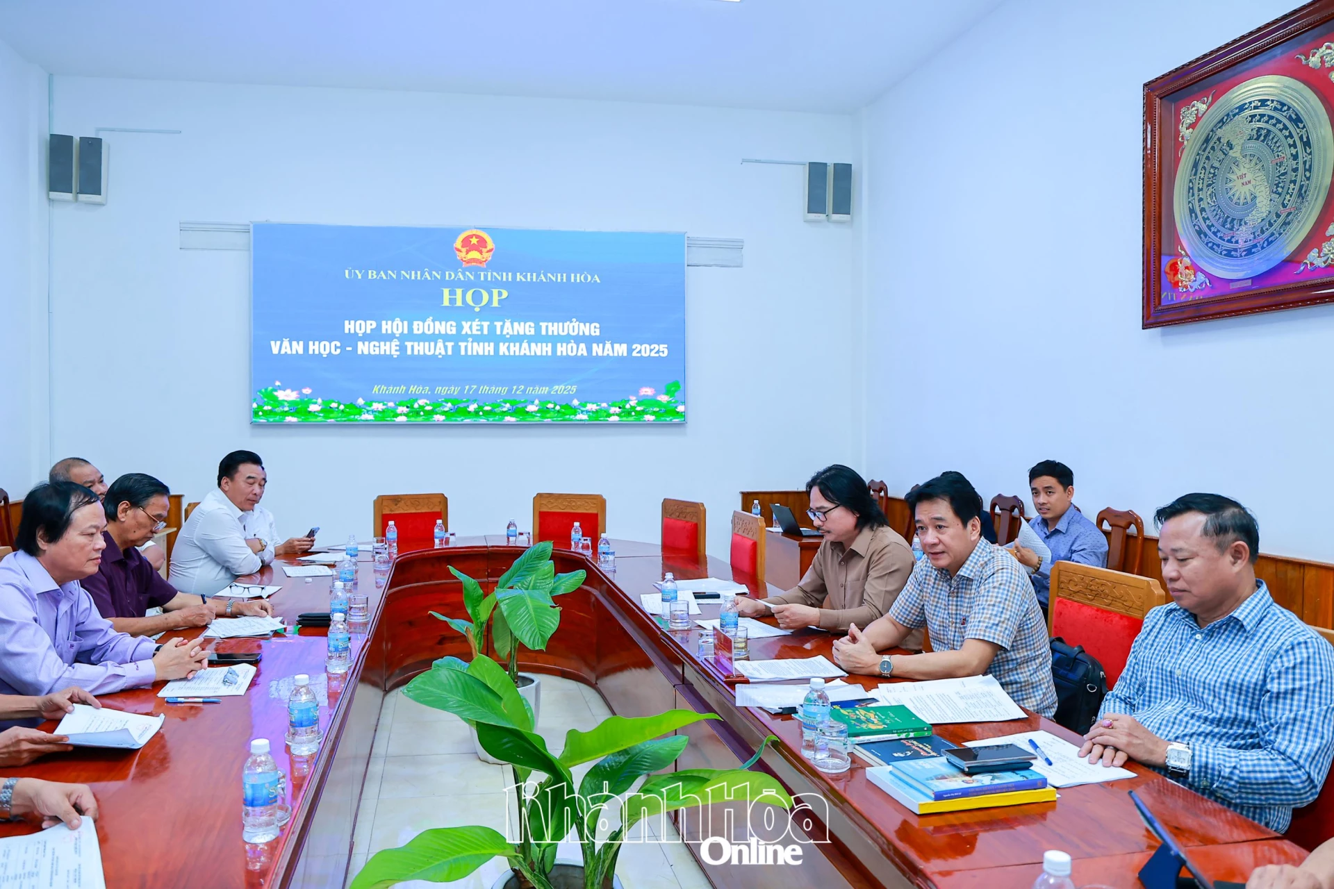 Chiều 17-12, đồng chí Nguyễn Long Biên - Ủy viên Ban Thường vụ Tỉnh ủy, Phó Chủ tịch Thường trực UBND tỉnh chủ trì cuộc họp Hội đồng xét Tặng thưởng văn học nghệ thuật (VHNT) tỉnh Khánh Hòa năm 2025.