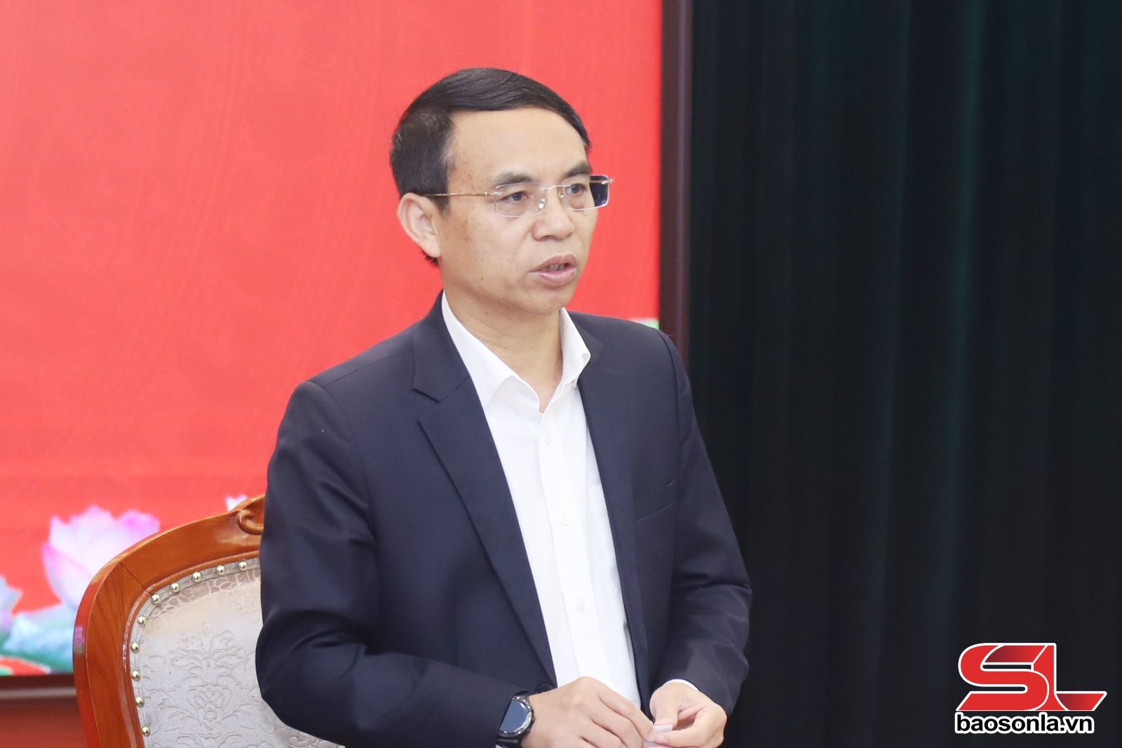 Đồng chí Nguyễn Minh Tiến, Phó Chủ tịch UBND tỉnh, phát biểu tại cuộc họp.