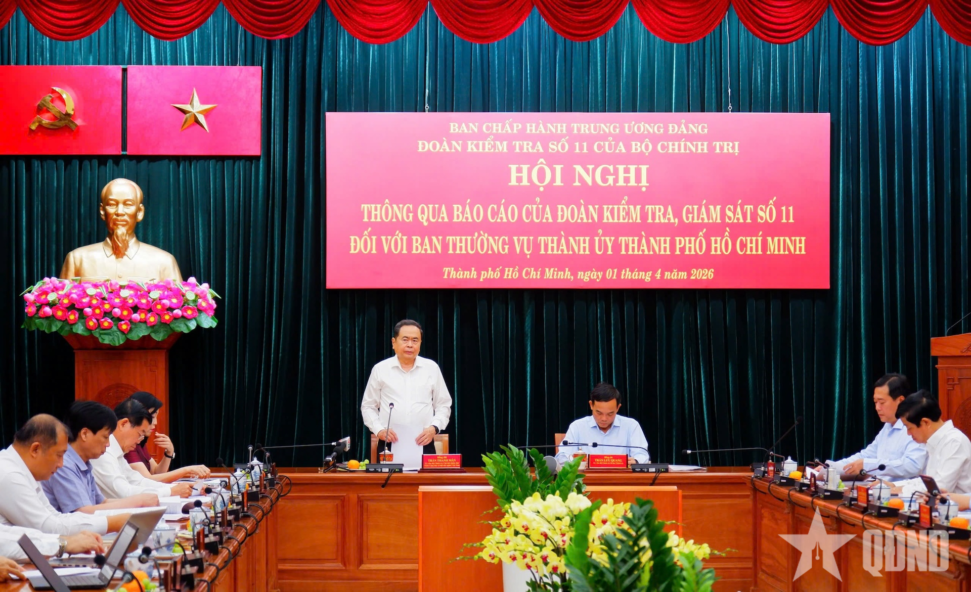 Phát biểu tại hội nghị, Chủ tịch Quốc hội Trần Thanh Mẫn đánh giá cao tinh thần phối hợp nghiêm túc và trách nhiệm của Ban Thường vụ Thành ủy TP Hồ Chí Minh và các cơ quan, đơn vị liên quan trong quá trình làm việc với đoàn; chuẩn bị báo cáo và các tài liệu liên quan đầy đủ.