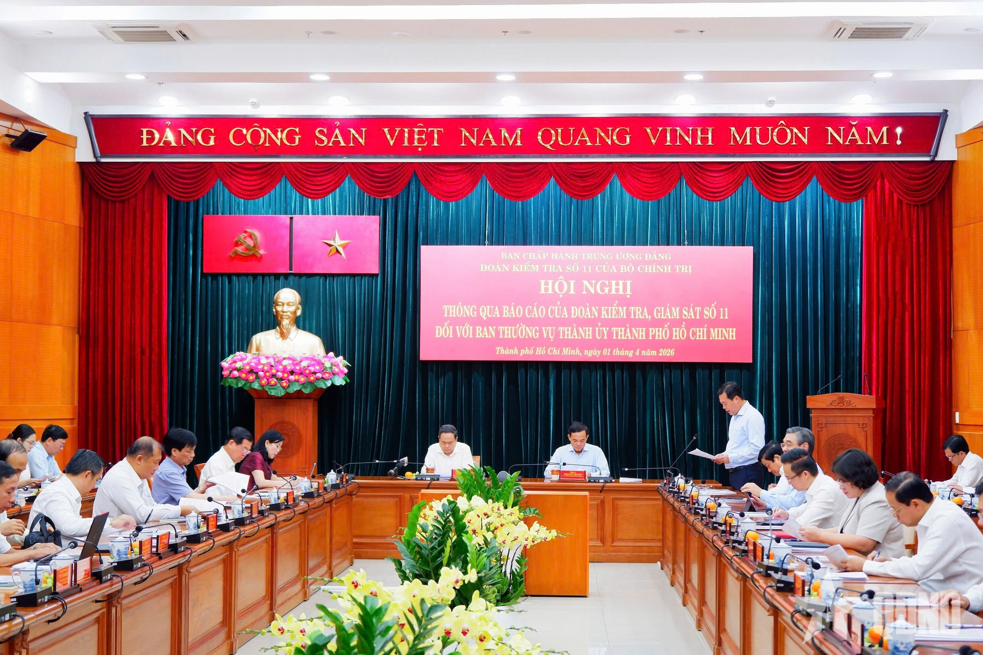 Đoàn công tác ghi nhận Ban Thường vụ Thành ủy TP Hồ Chí Minh đã đạt được nhiều kết quả tích cực. Công tác lãnh đạo, chỉ đạo triển khai Nghị quyết được thực hiện chủ động, kịp thời; đã chủ động sớm có dự thảo Chương trình hành động và tổ chức hội nghị lấy ý kiến nhiều lần nhằm cụ thể hóa Nghị quyết Đại hội XIV.