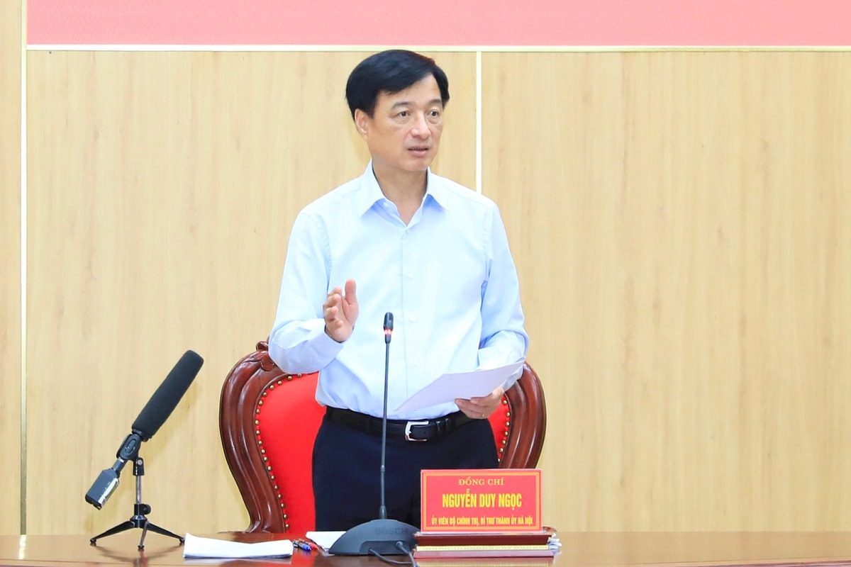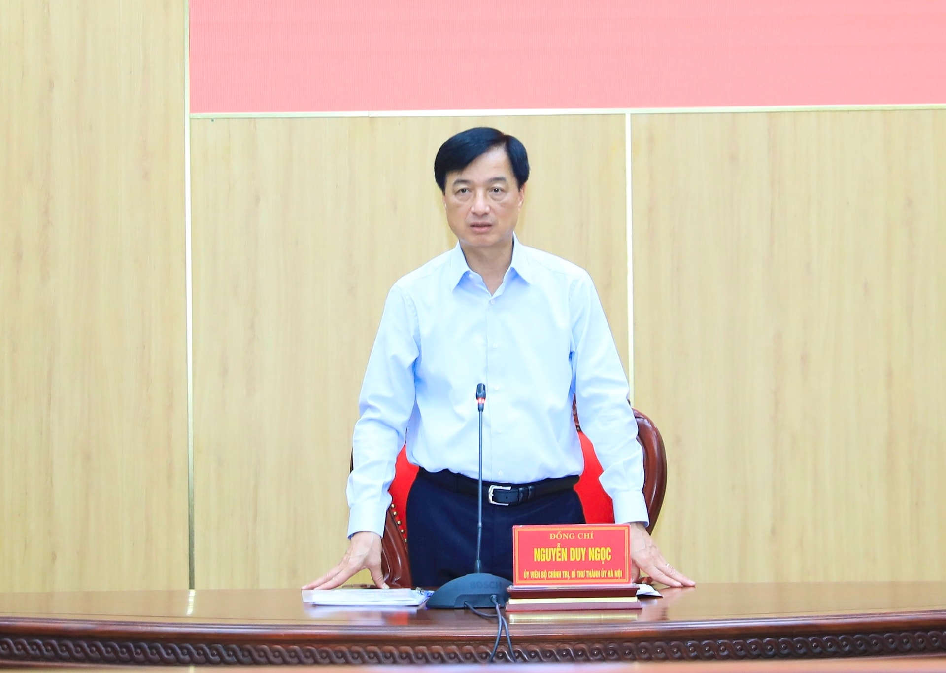 Ủy viên Bộ Chính trị, Bí thư Thành ủy Hà Nội Nguyễn Duy Ngọc, Trưởng đoàn kiểm tra, giám sát số 18 phát biểu chỉ đạo tại hội nghị. Ảnh: Quang Thái
