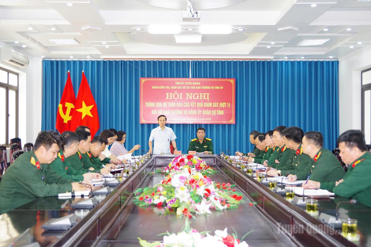 Đoàn kiểm tra, giám sát đã thông qua dự thảo báo cáo kết quả kiểm tra, giám sát đối với Đảng ủy Quân sự tỉnh. Theo đó đoàn kiểm tra, giám sát đánh giá: Ban Thường vụ Đảng ủy Quân sự tỉnh đã lãnh đạo, chỉ đạo quán triệt, triển khai thực hiện Nghị quyết Đại hội XIV của Đảng và Nghị quyết Đại hội Đảng bộ tỉnh lần thứ I bảo đảm chặt chẽ, nghiêm túc. Công tác tuyên truyền có nhiều đổi mới; việc cụ thể hóa nghị quyết thành các chương trình, kế hoạch được thực hiện đồng bộ, gắn với nhiệm vụ chính trị của từng chi bộ, cơ quan, đơn vị. Công tác bầu cử đại biểu Quốc hội khóa XVI và đại biểu HĐND các cấp nhiệm kỳ 2026-2031 được lãnh đạo, chỉ đạo chặt chẽ, đúng quy trình, tiến độ được giao; phối hợp chặt chẽ với các lực lượng giữ vững an ninh chính trị, trật tự an toàn xã hội trước, trong và sau bầu cử. Ban Chỉ đạo 35 Đảng ủy Quân sự tỉnh đã phát huy vai trò nòng cốt trong bảo vệ nền tảng tư tưởng của Đảng, góp phần củng cố niềm tin của cán bộ, chiến sĩ và nhân dân đối với sự lãnh đạo của Đảng; các phong trào thi đua được triển khai đồng bộ, thiết thực, hiệu quả được các cấp đánh giá cao.