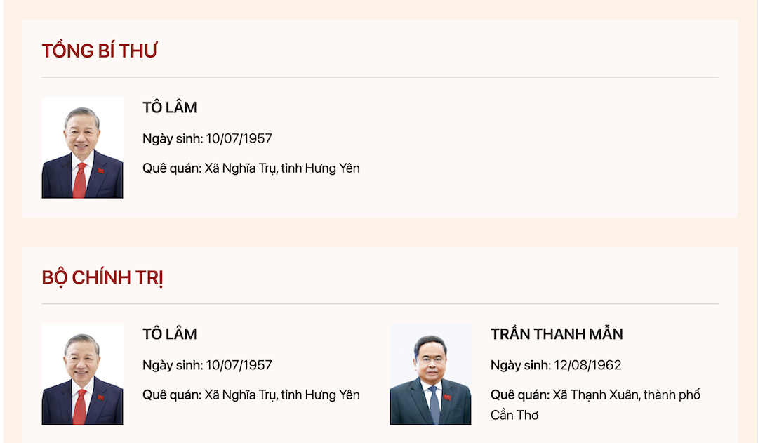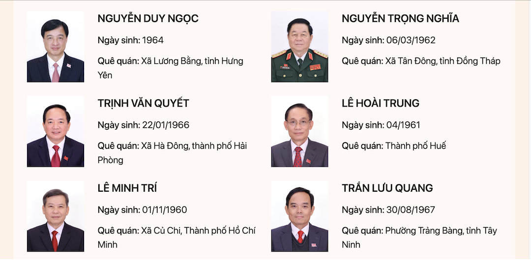 Danh sách Bộ Chính trị khóa XIV.
