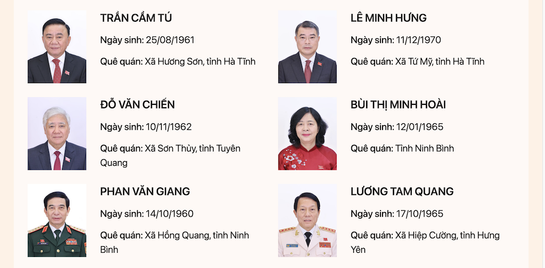 DANH SÁCH 19 ĐỒNG CHÍ ỦY VIÊN BỘ CHÍNH TRỊ KHÓA XIV