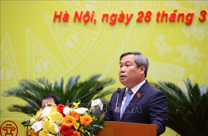 Chủ tịch UBND thành phố Hà Nội Vũ Đại Thắng phát biểu. Ảnh: Văn Điệp/TTXVN