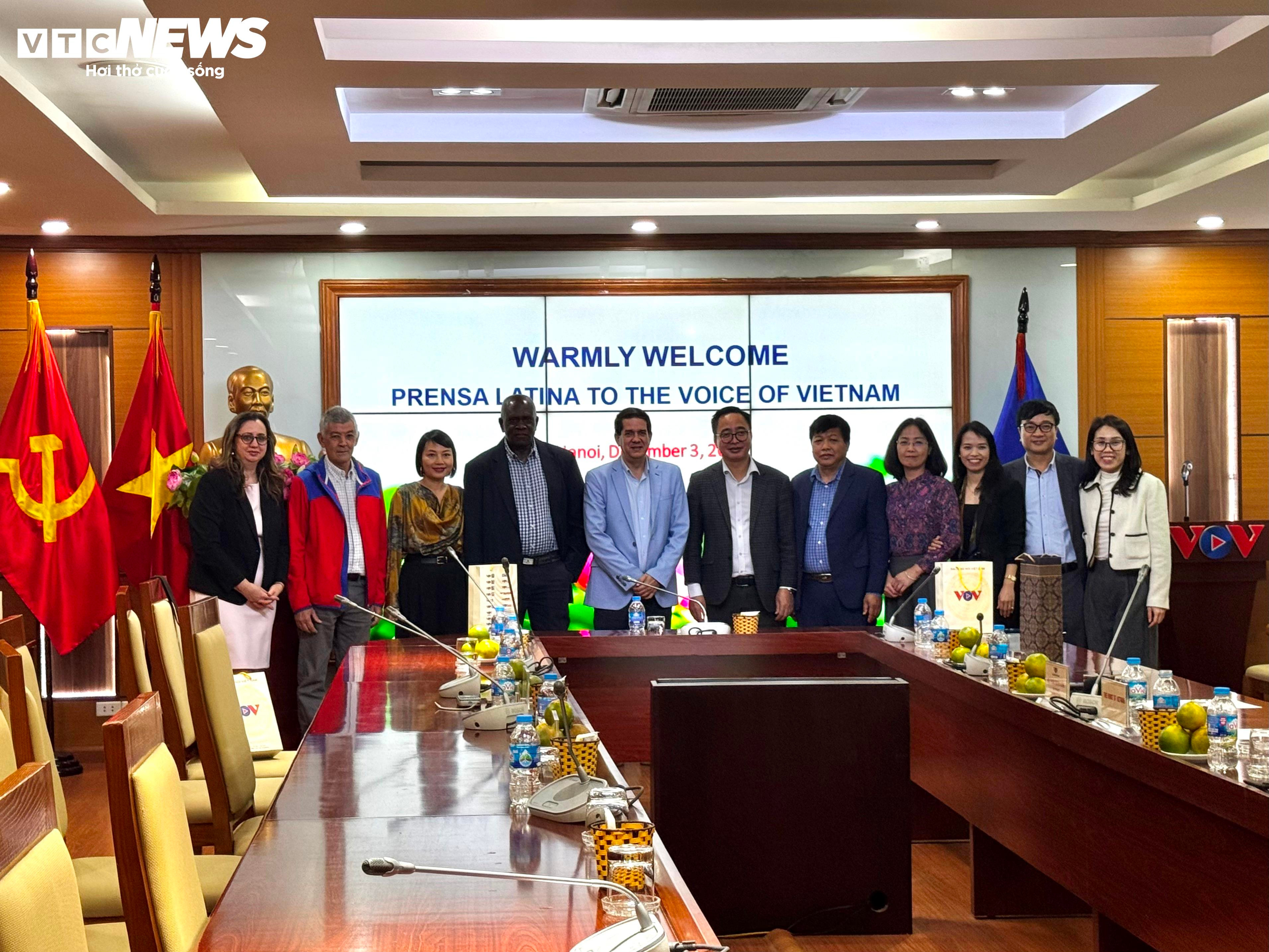 Đài Tiếng nói Việt Nam (VOV) tiếp và làm việc với Đoàn đại biểu Thông tấn xã Mỹ Latinh Prensa Latina (Cuba) ngày 3/12. (Ảnh: Diễm Châu)