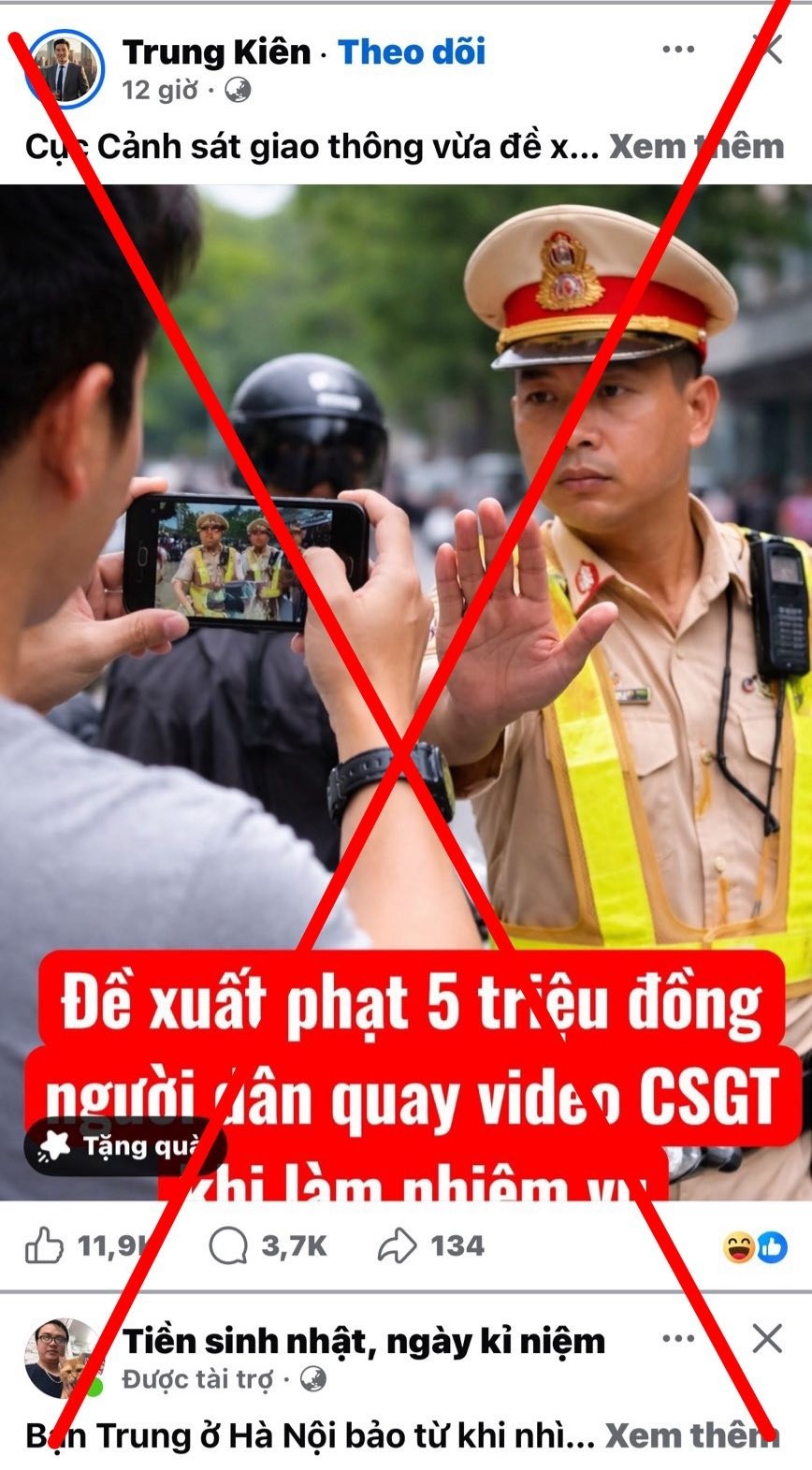 Hiện trên mạng xã hội đang đưa thông tin về việc Cục CSGT đưa ra đề xuất xử phạt 5 triệu đồng đối với cá nhân quay video lực lượng Cảnh sát giao thông khi đang làm nhiệm vụ mà chưa được sự cho phép. Kèm theo đó là hình ảnh do AI (trí tuệ nhân tạo) thiết lập.