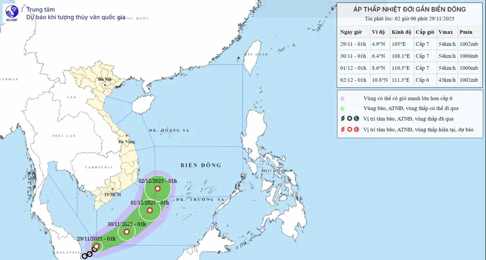 Dự báo trong hôm nay, cơn áp thấp nhiệt đới này có khả năng đi vào vùng biển khu vực Nam Biển Đông.